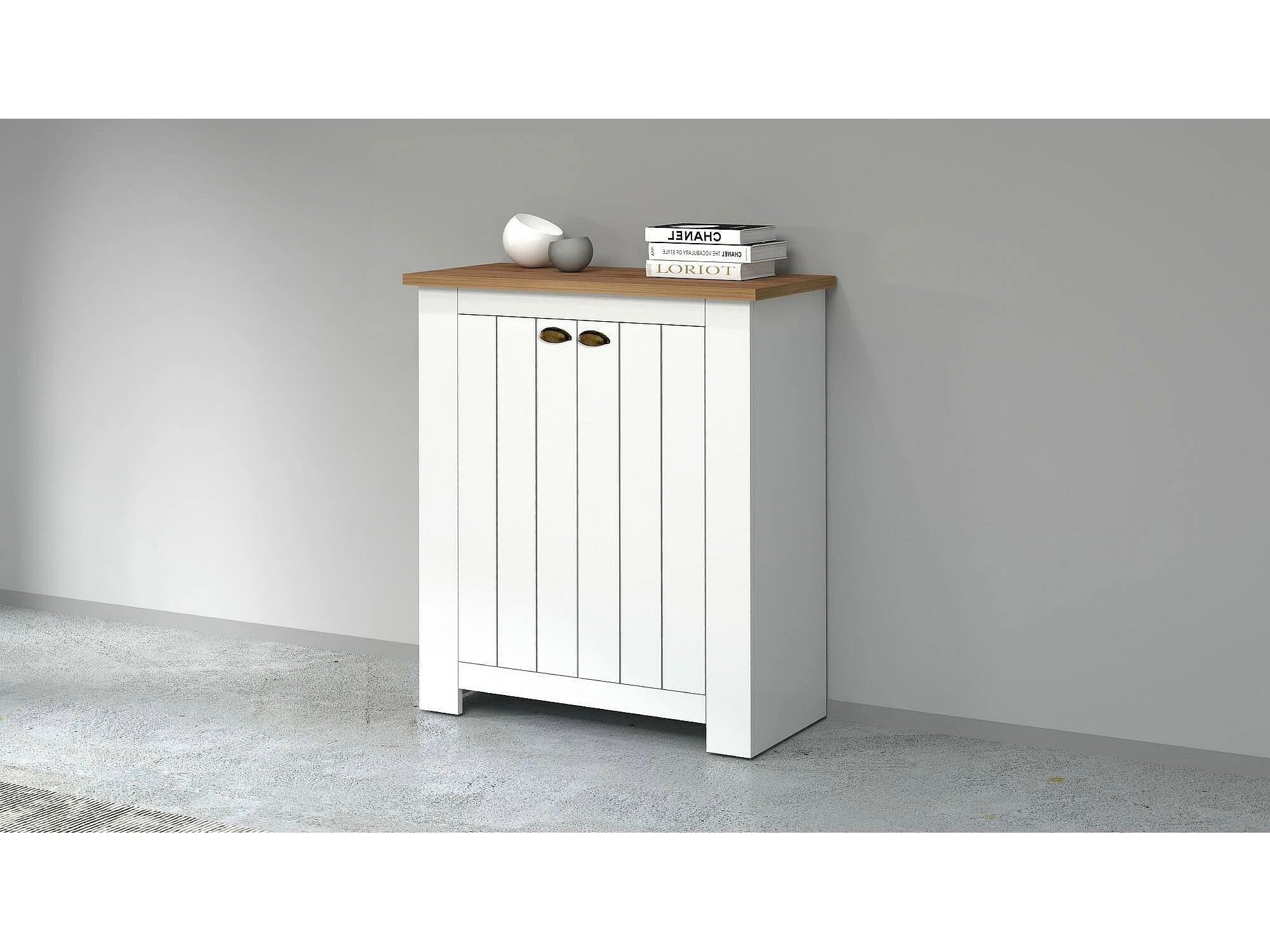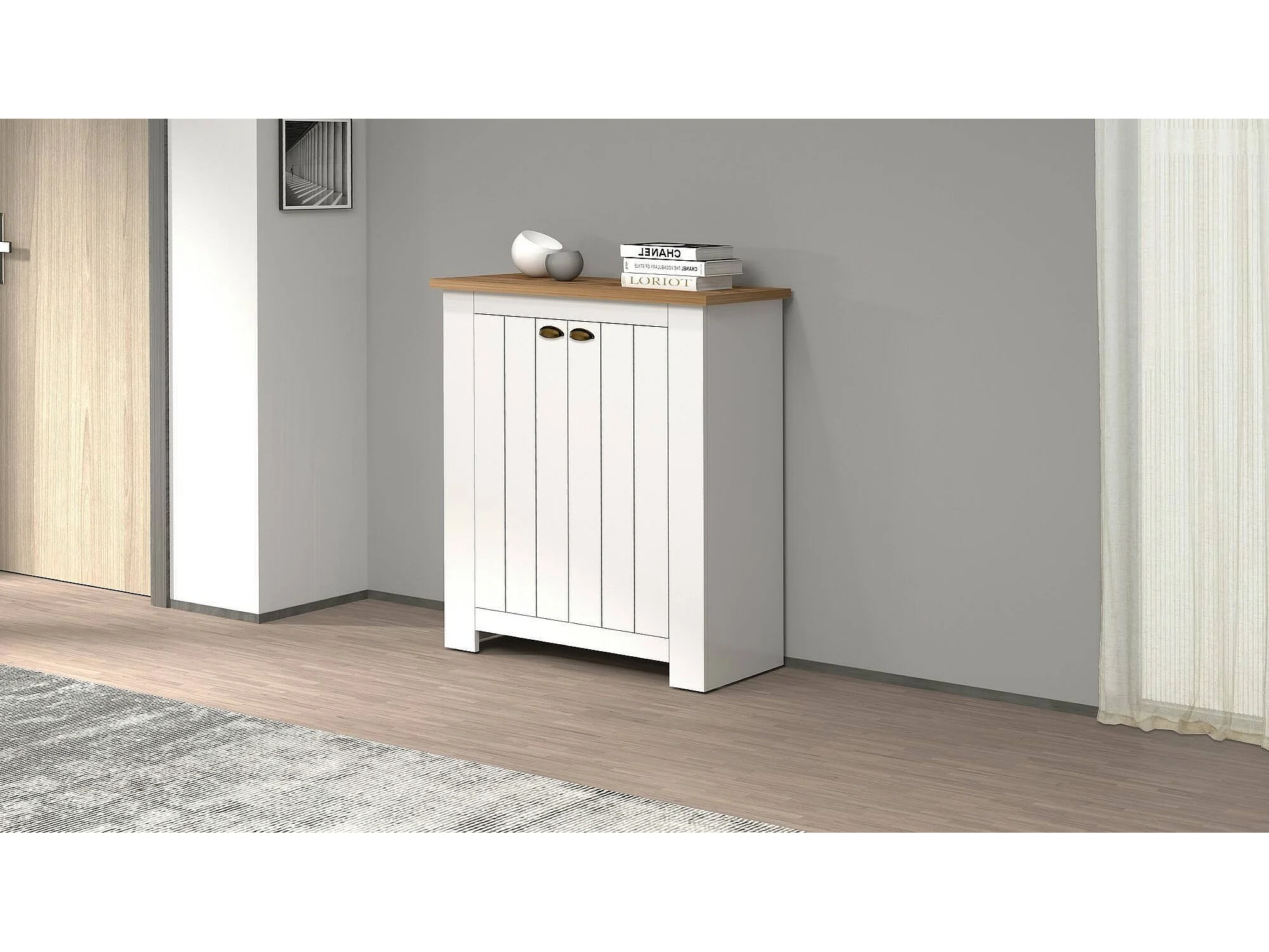 Étagère à chaussures Tonio, étagère à chaussures peu encombrante avec 2 portes, armoire d'entrée multifonctionnelle, 84x42h100 cm, Blanc et Chêne