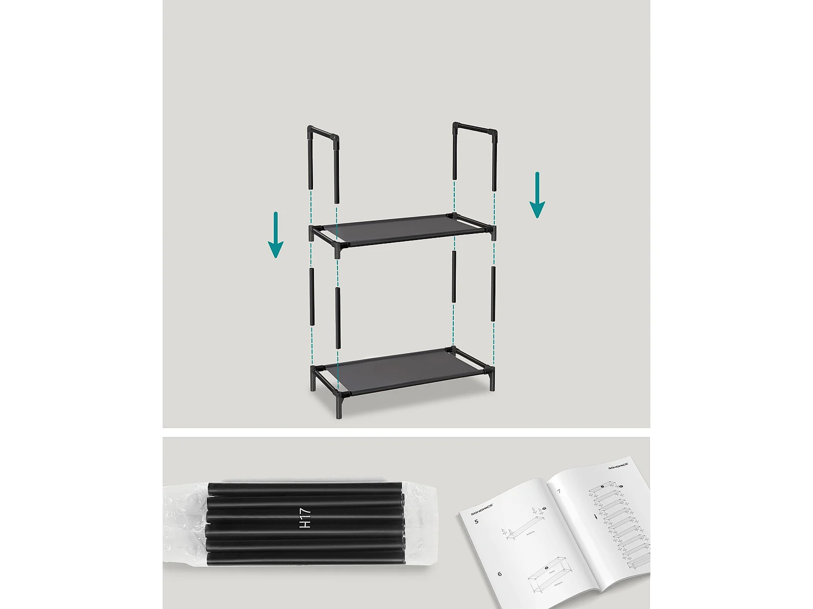 Étagère à chaussures Valora noire de style loft à 10 niveaux