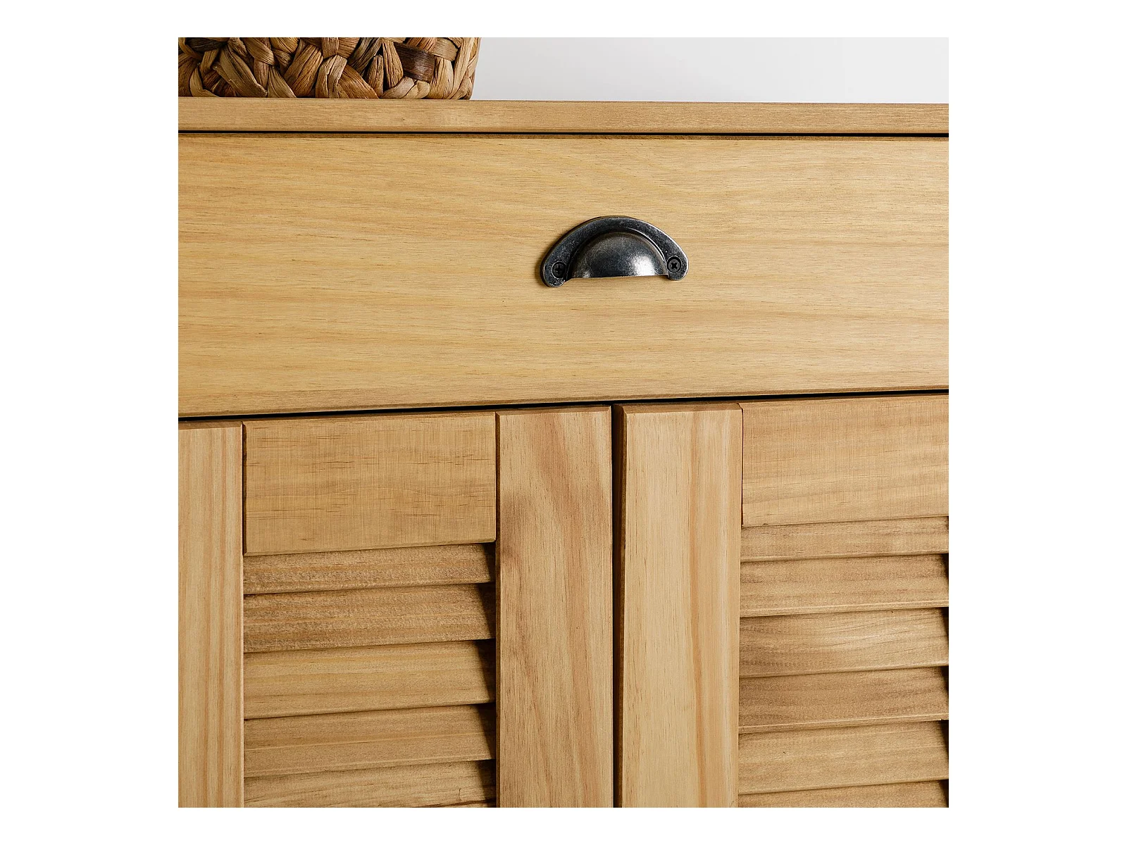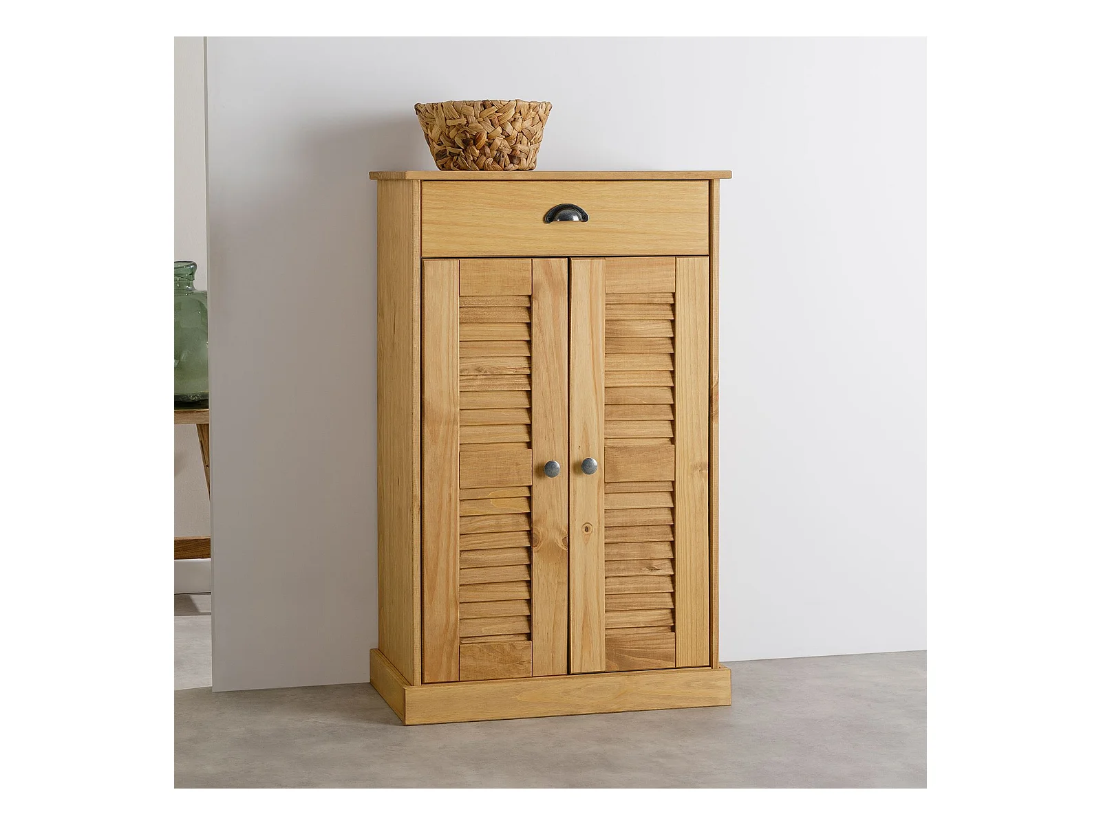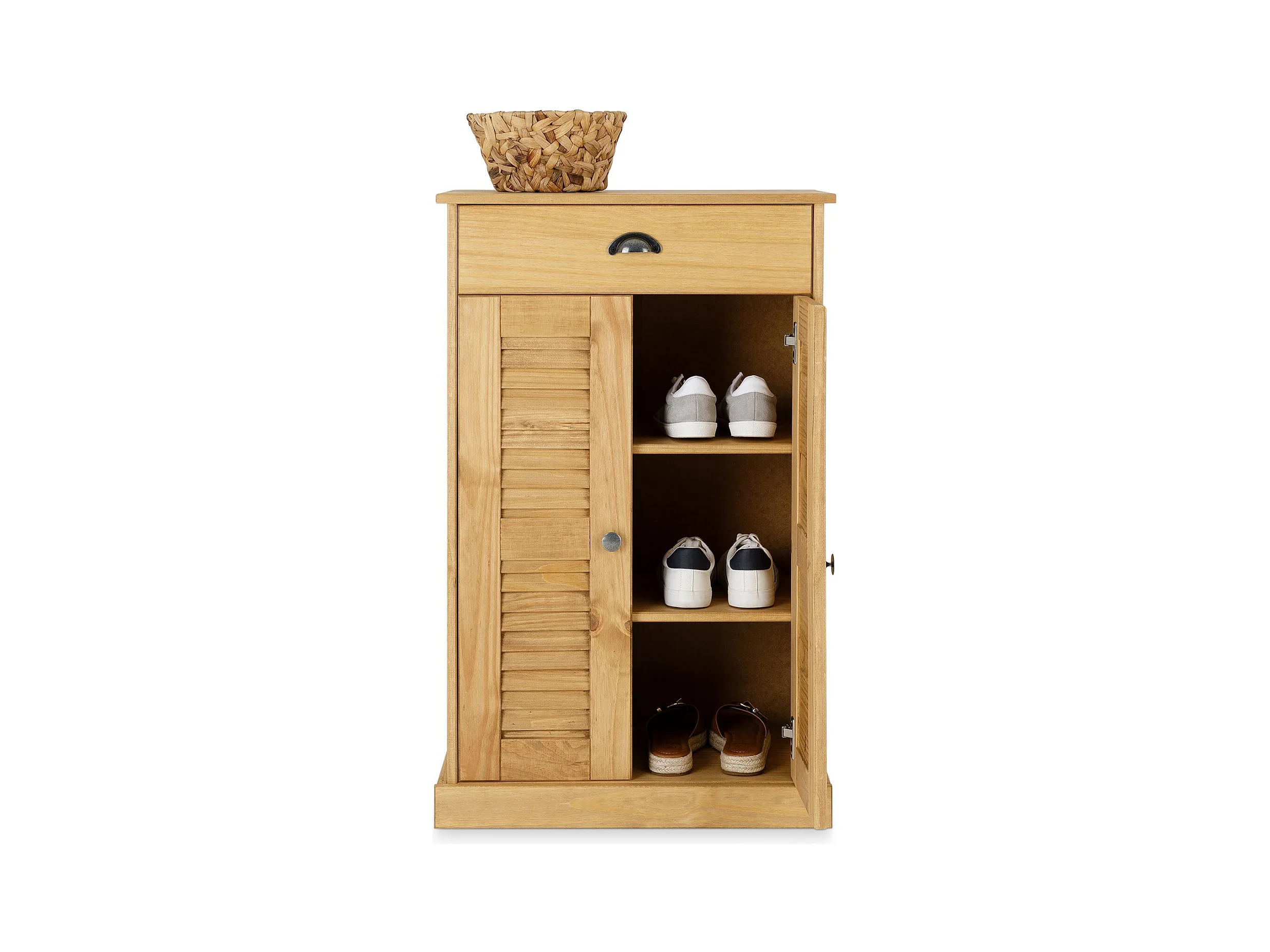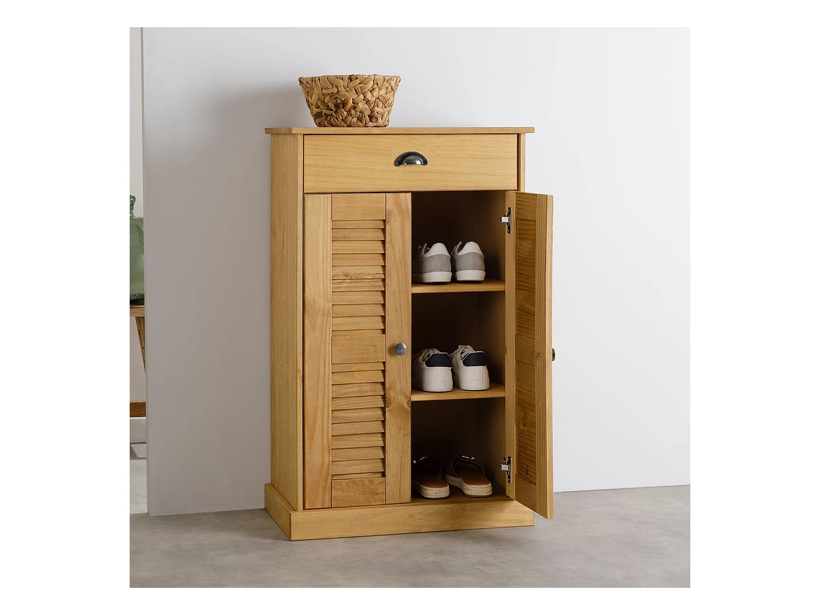 Étagère à chaussures VENETA en bois massif coloris naturel avec 2 portes et 1 tiroir