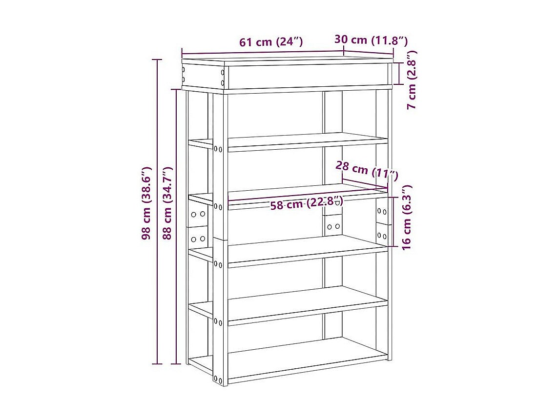 Étagère à chaussures vieux bois 60x30x98 bois d'ingénierie