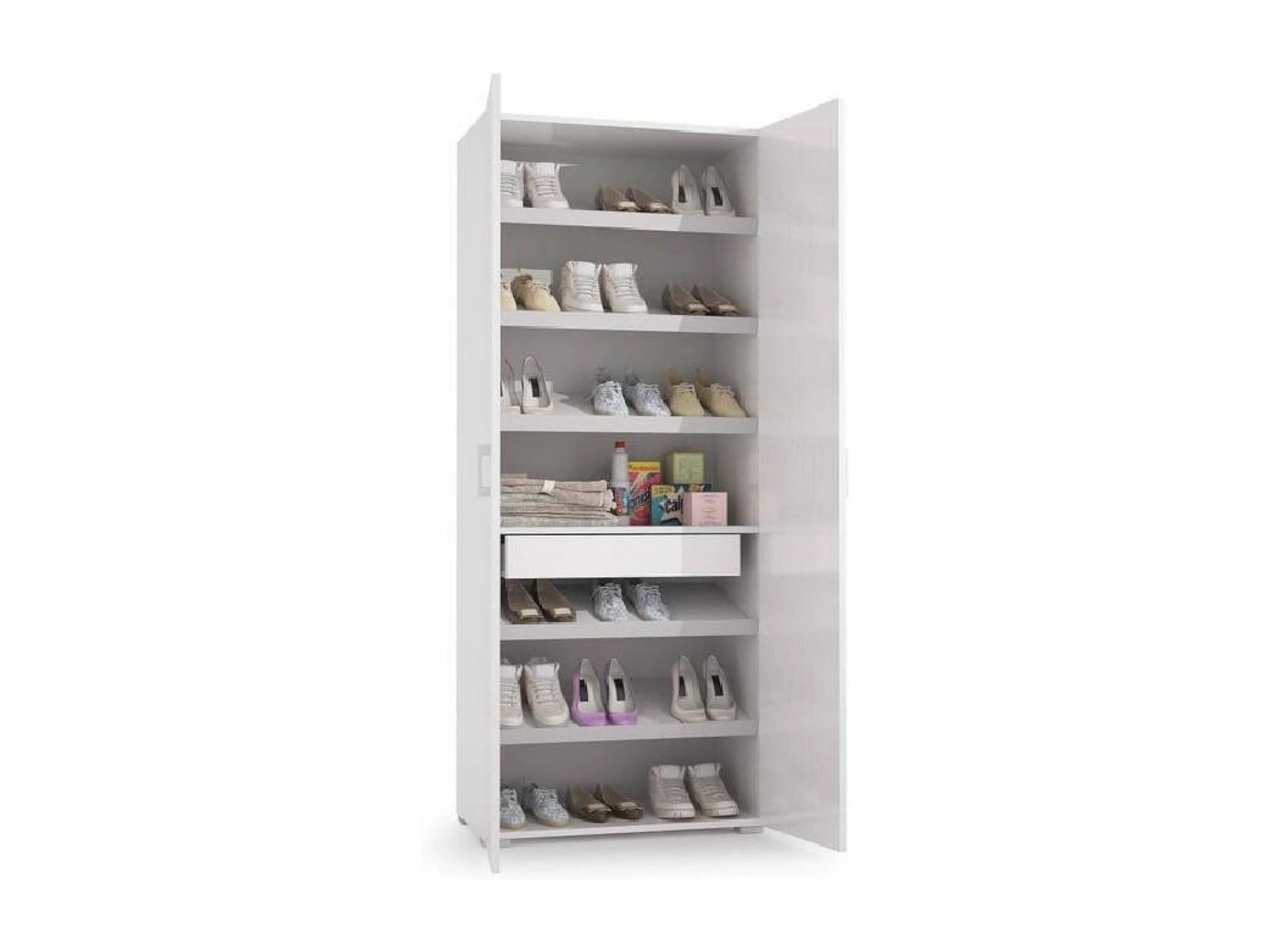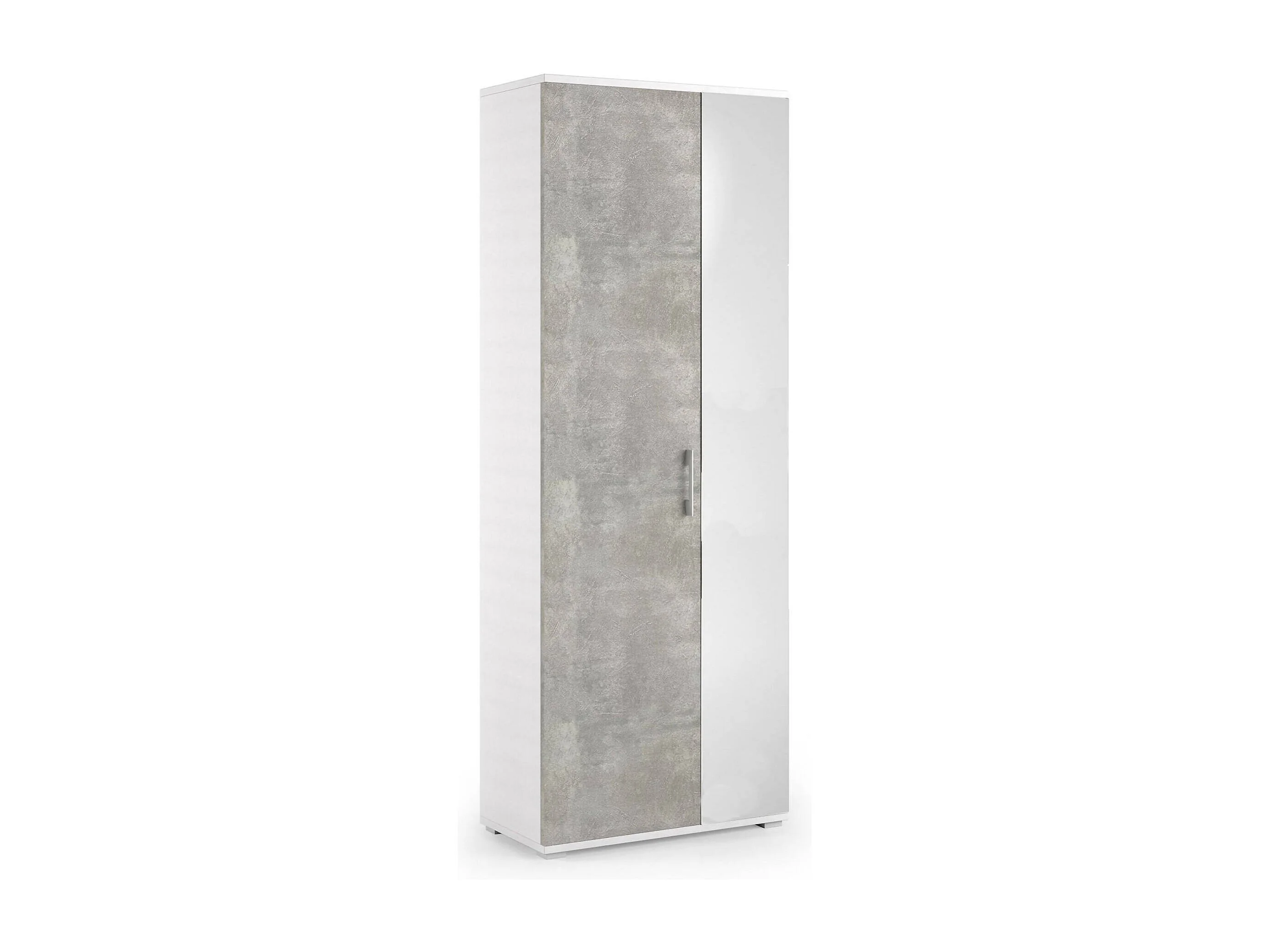 Étagère à chauure Dminiat, meuble d'entrée polyvalent avec porte miroir, meuble à chauure moderne avec 6 étagère, 100% Made in Italy, 72x37h195 cm, Blanc et Ciment