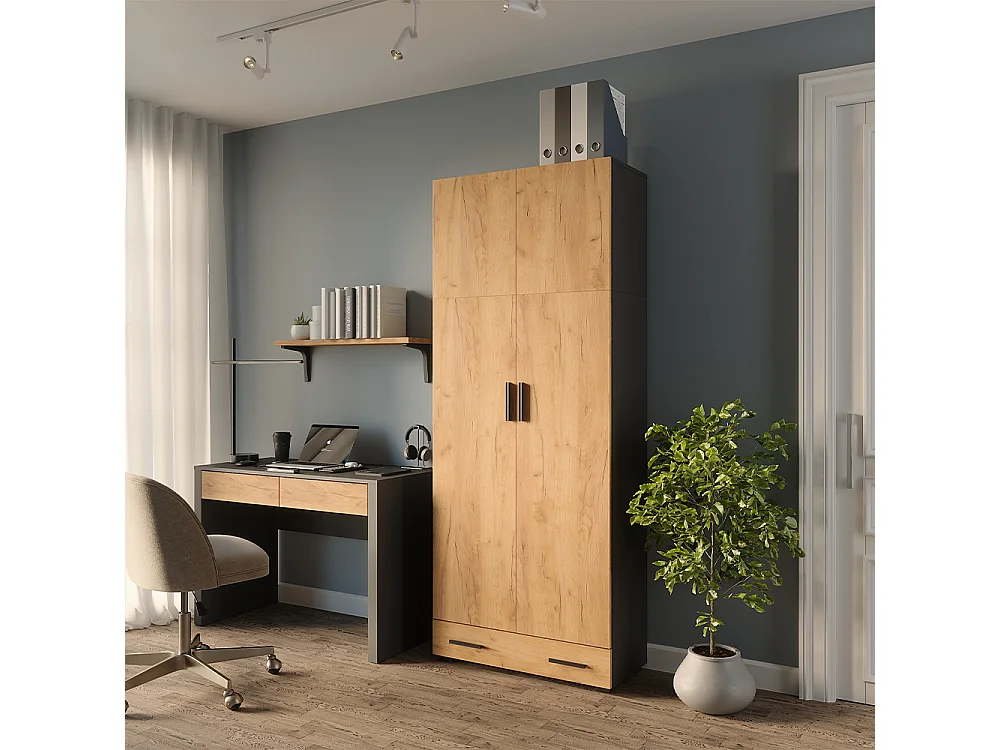 Étagère à dossiers anthracite/chêne doré 80x37x201.2 frank