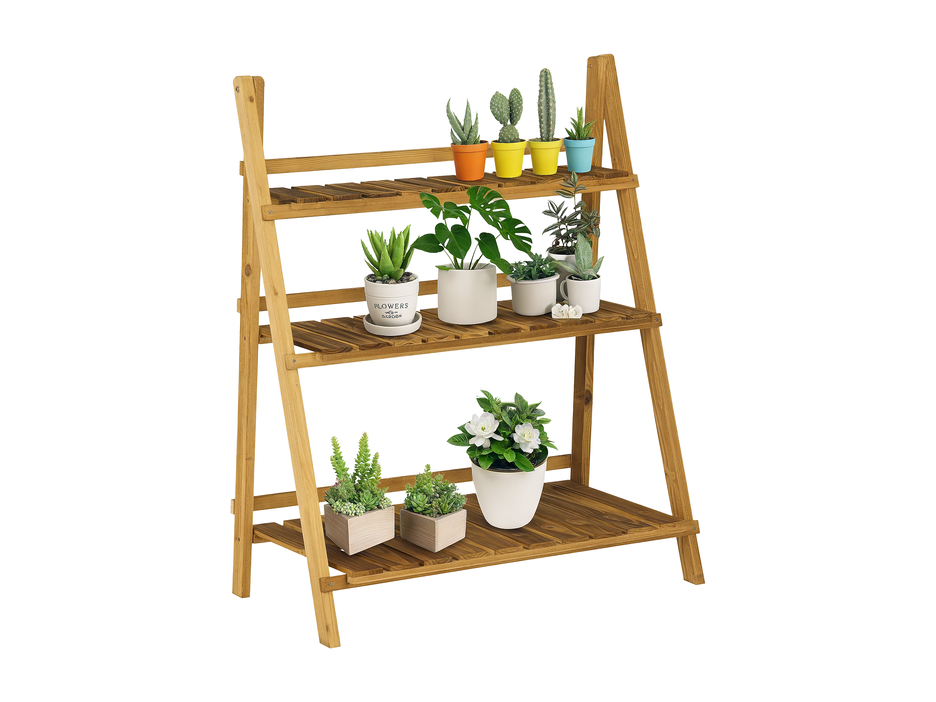 Étagère à plantes forme pyramidale échelle pliante avec 3 étagères - dim. 80L x 37l x 93H cm - bois sapin traité carbonisation