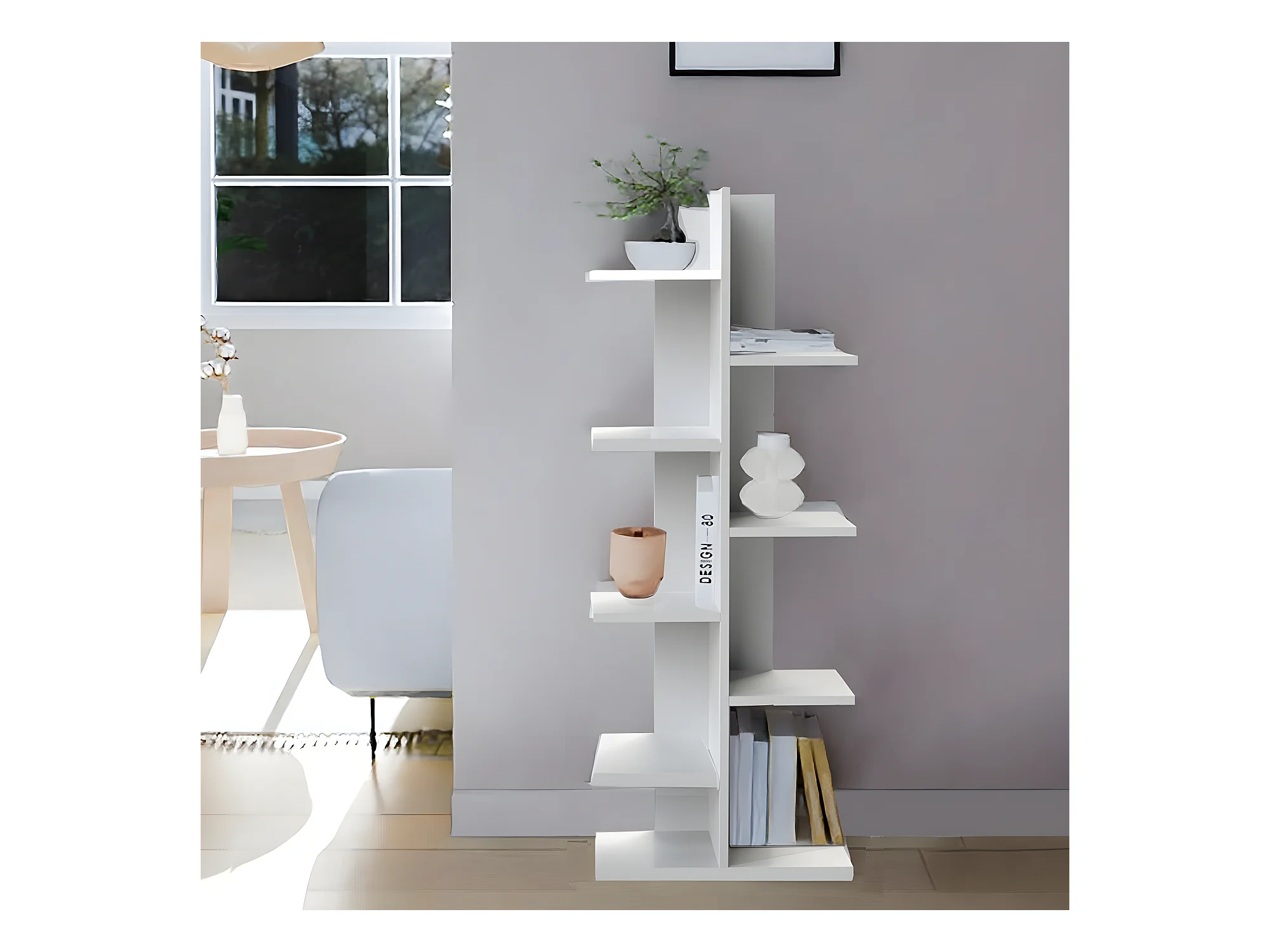 Bibliothèque en bois effet béton blanc Danaé