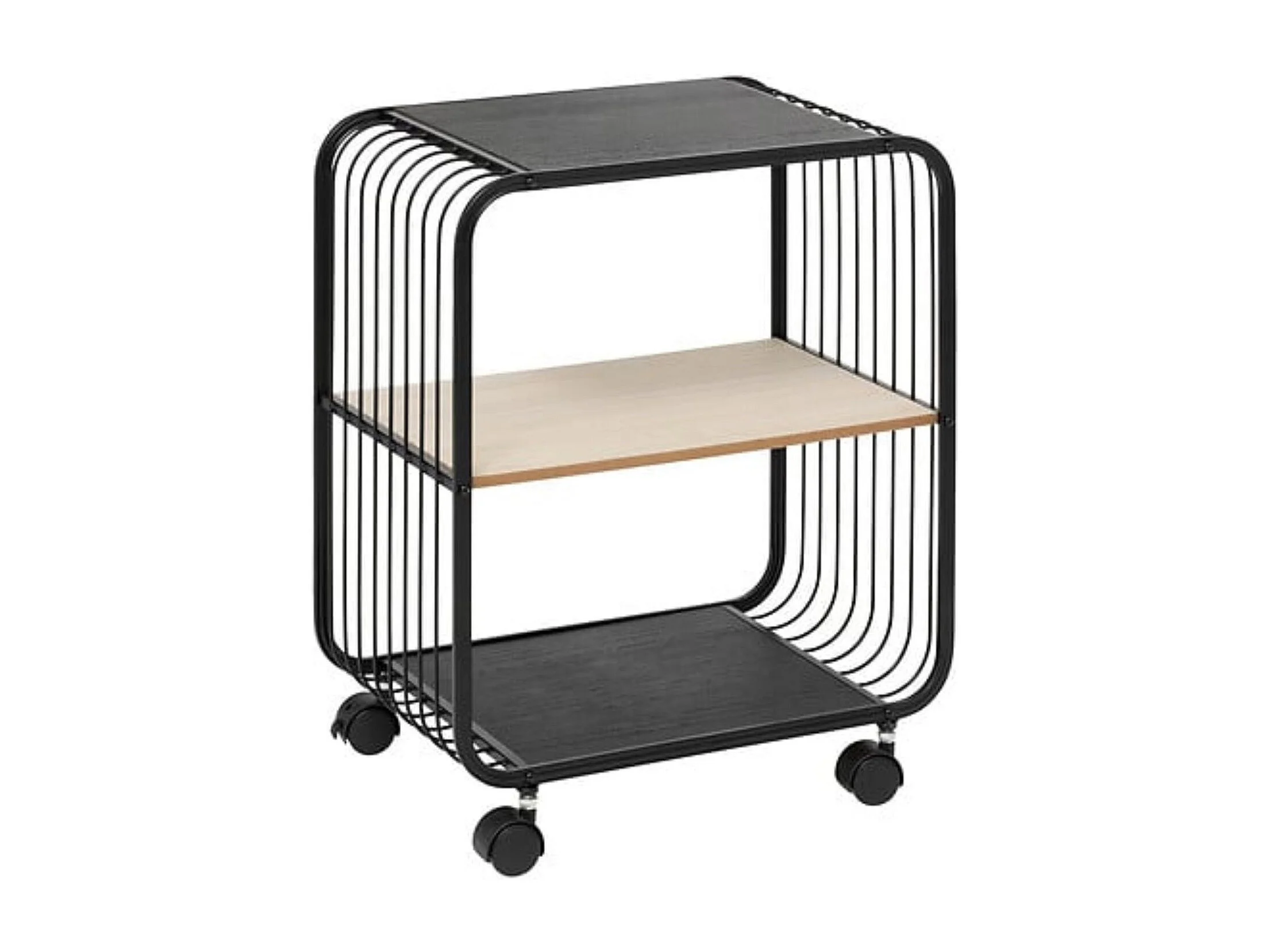Étagère à roulettes 2 niveaux en métal et bois - Noir
