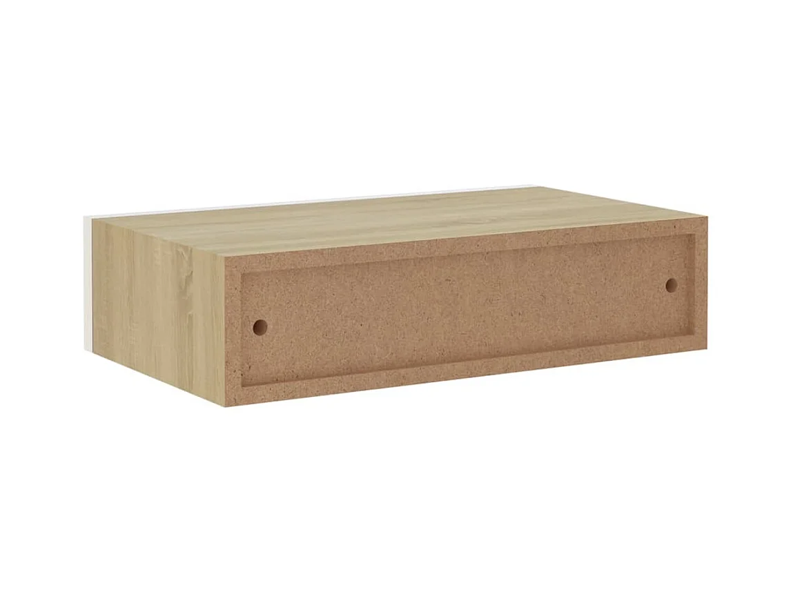 Étagère à tiroir murale Chêne et blanc 60x23,5x10 MDF