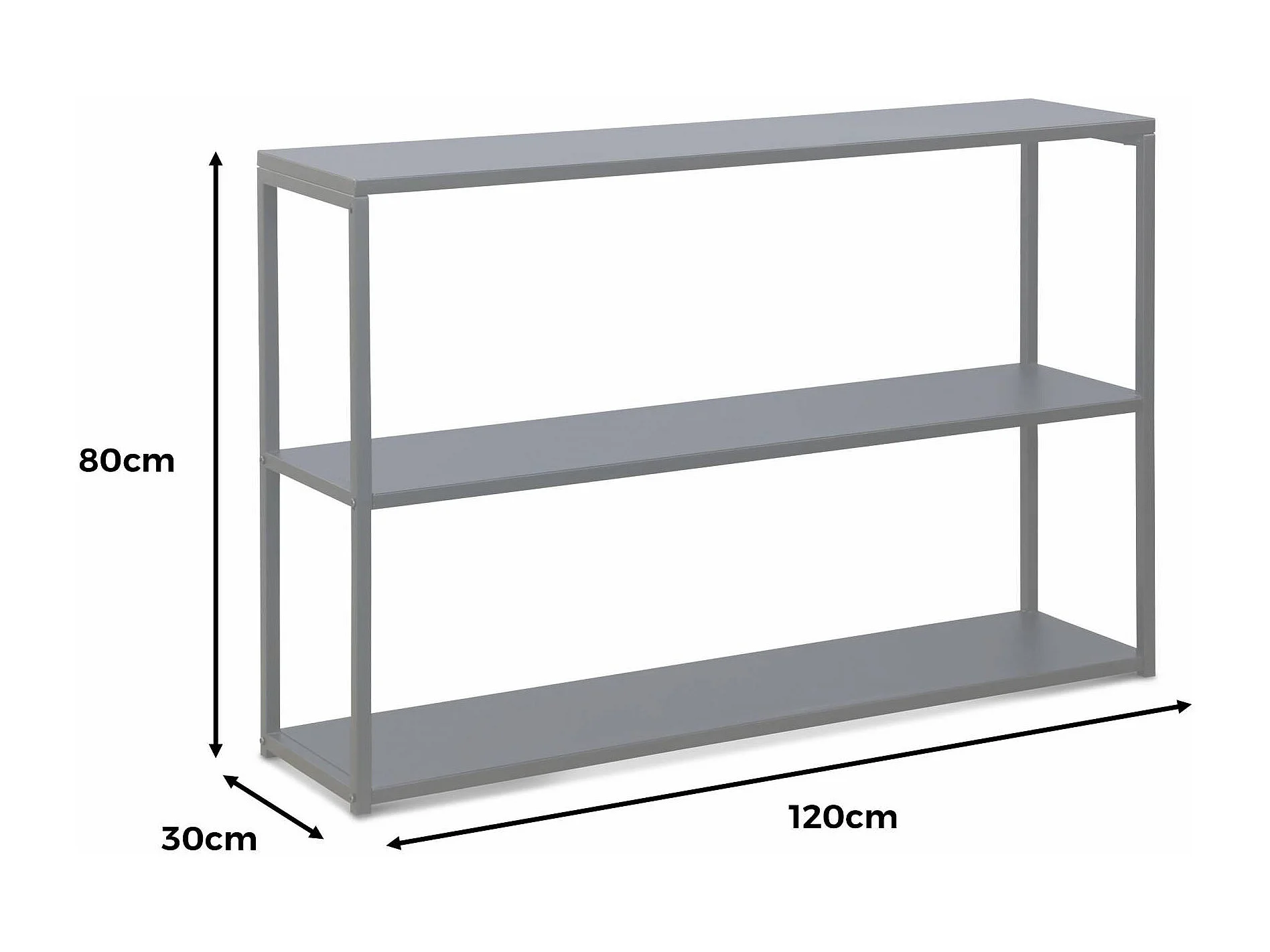 Etagère basse 3 niveaux en métal noir - Industrielle - 120x30x80cm