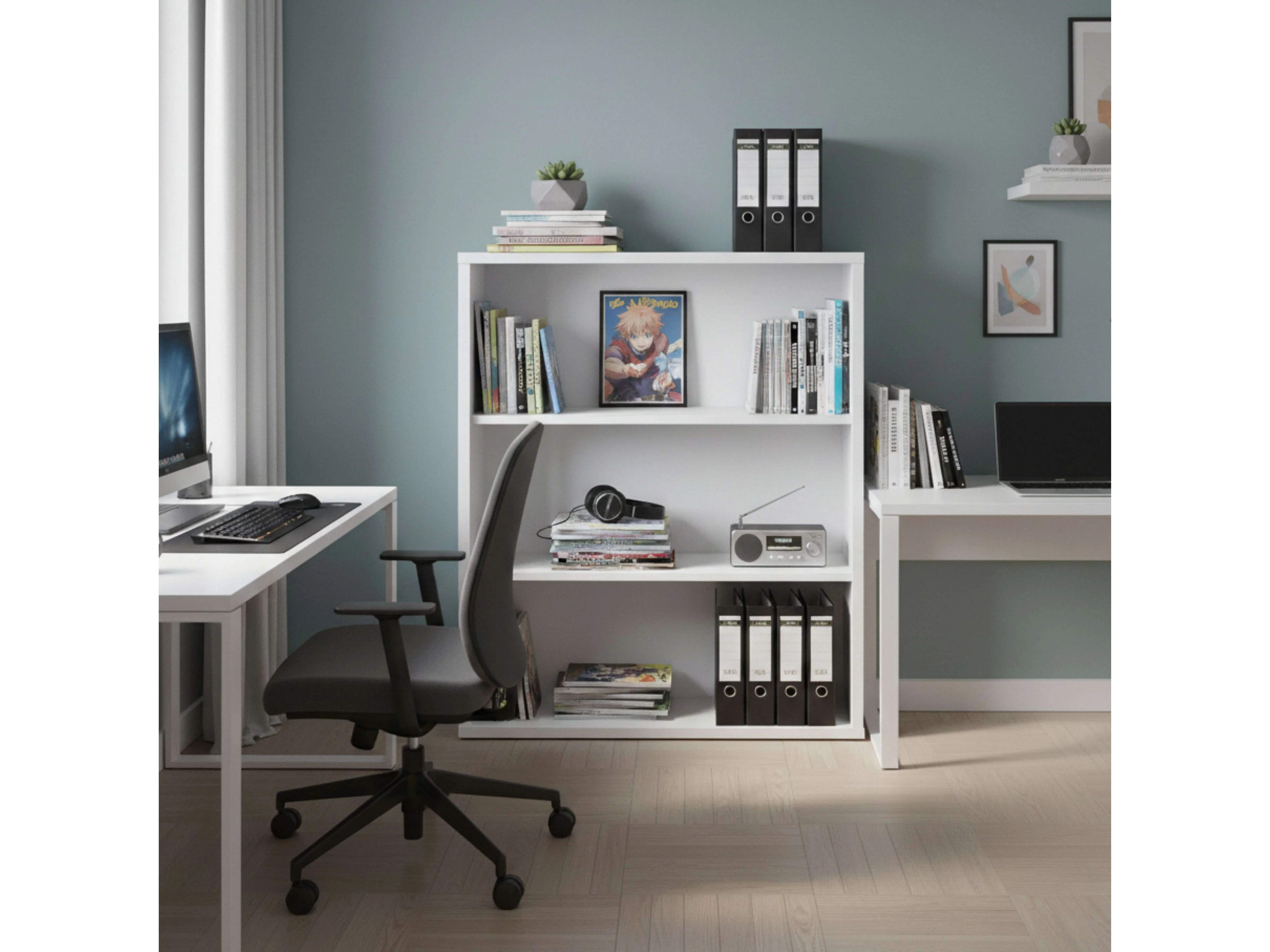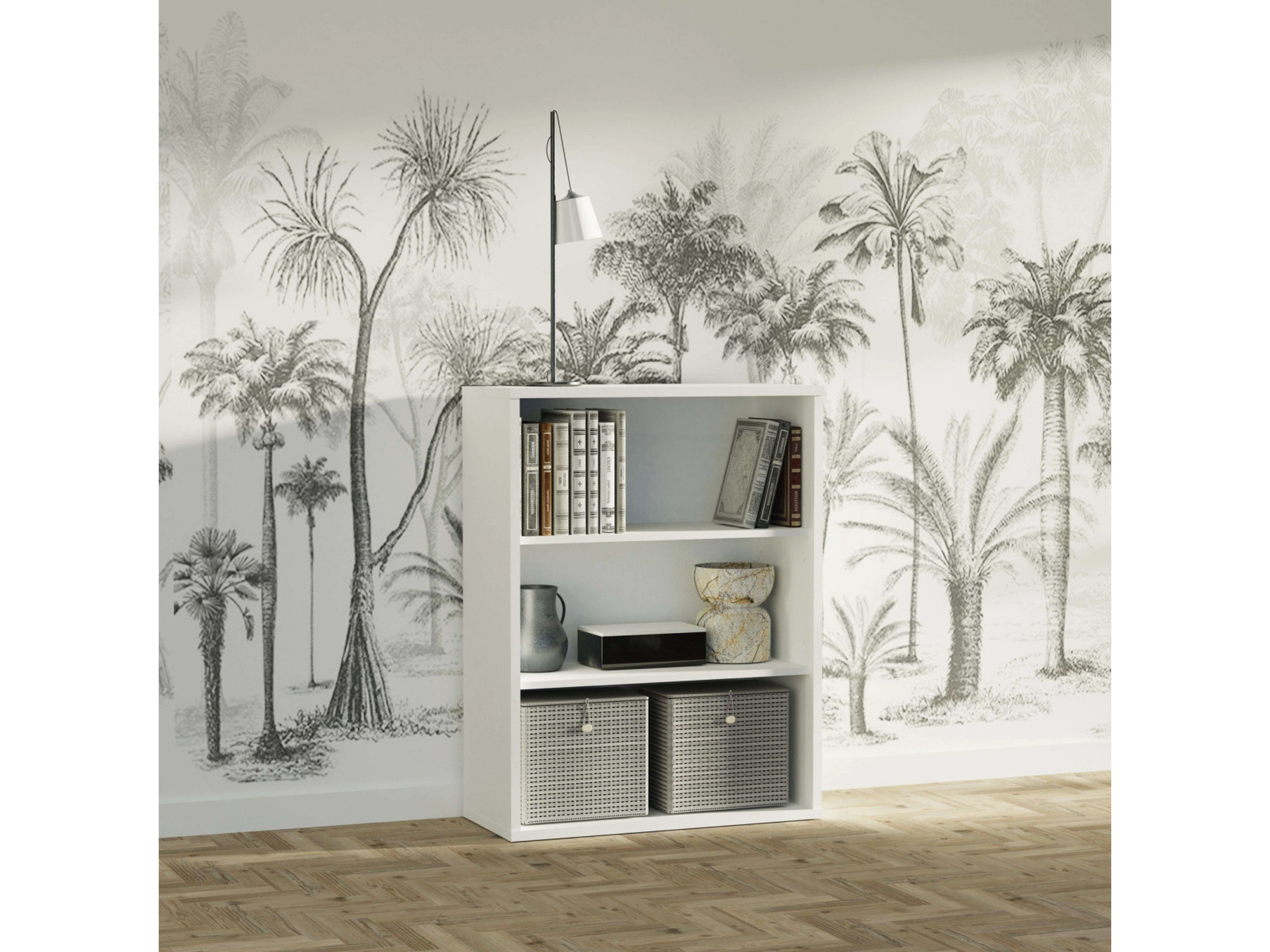 Étagère basse Plea pour salon, 3 niveaux, mélaminé blanc mat, 42x92x29 cm
