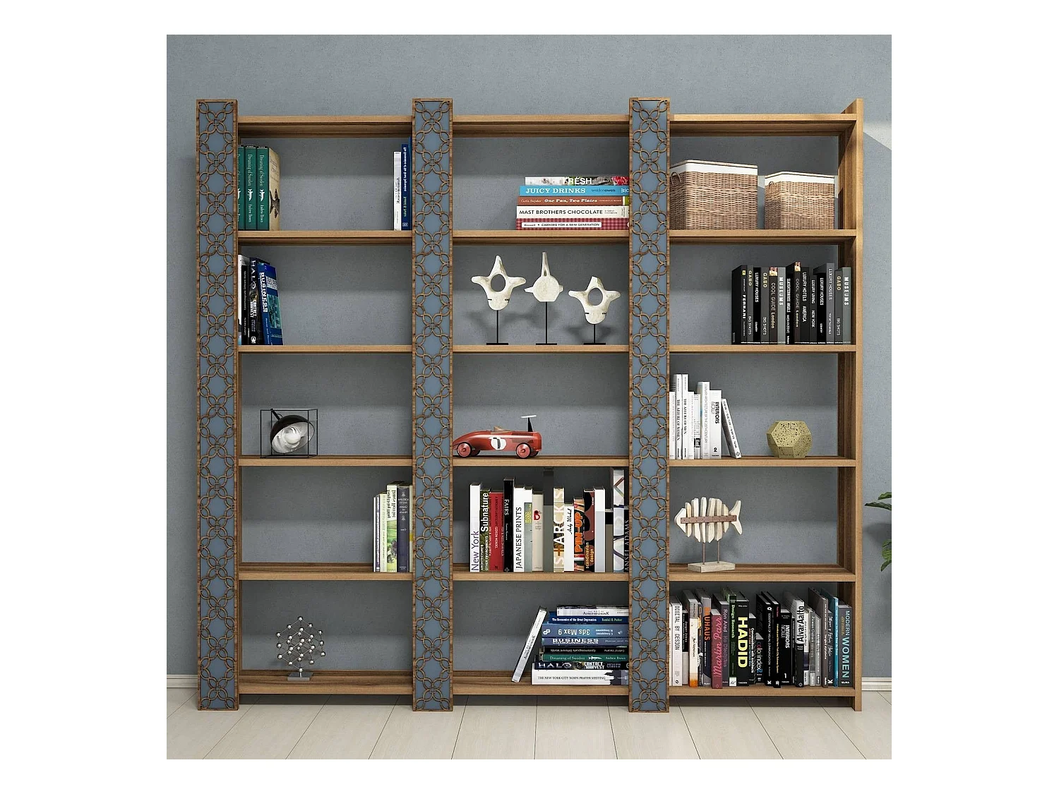 Étagère bibliothèque 3 rangées Oppidanus L184cm Bois Naturel et Calcédoine