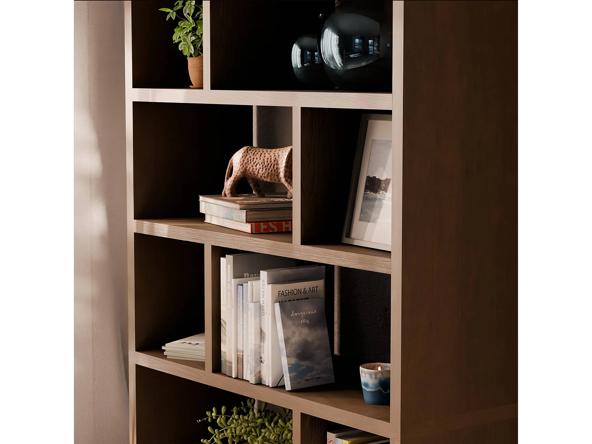 Etagère bibliothèque asymétrique 5 niveaux 10 compartiments. casiers. effet bois de noyer. L 111.2 x P 39 x H 190cm
