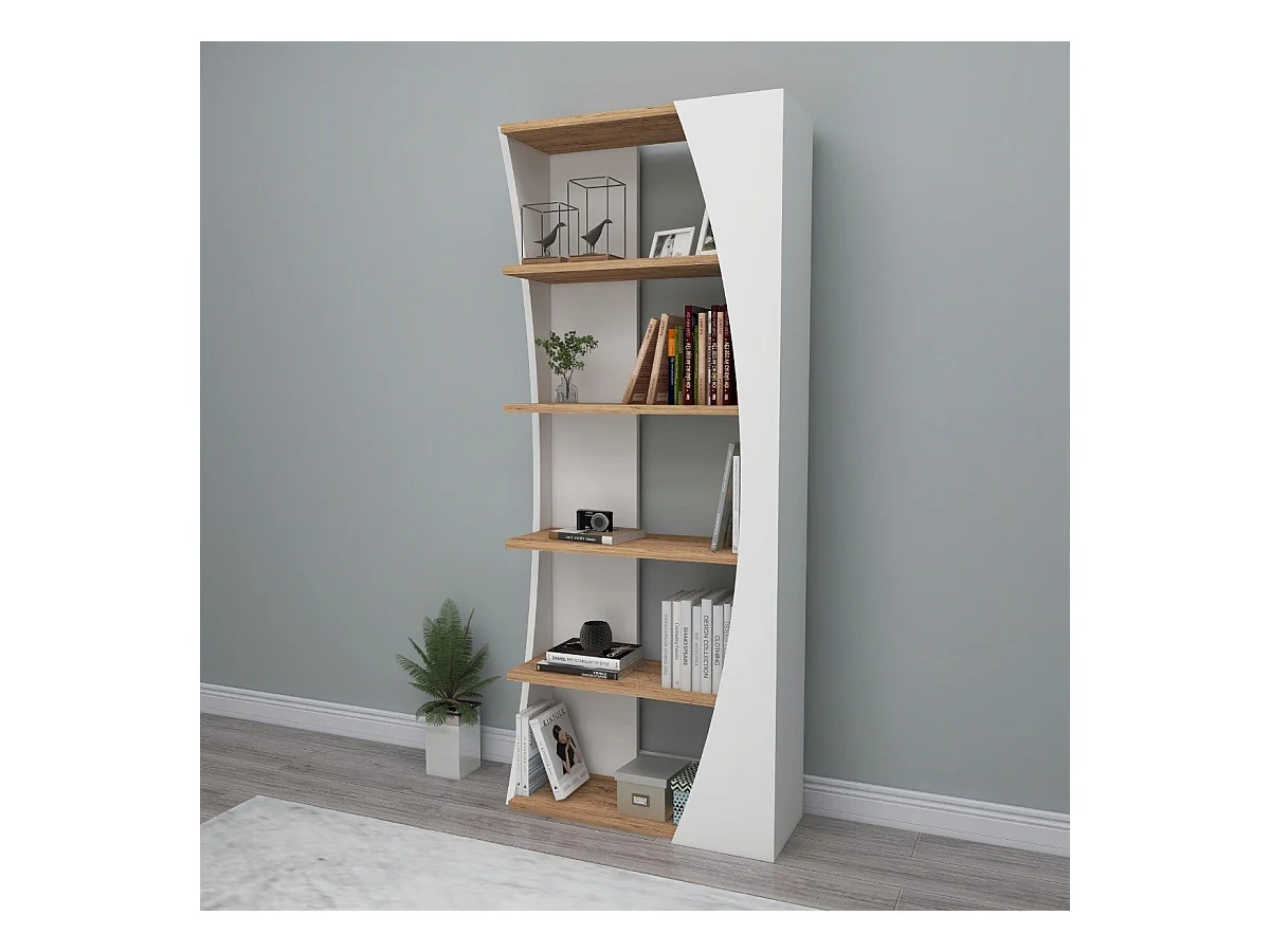 Etagère 5 tablettes décor blanc et pin atlantique H150 cm - Selge