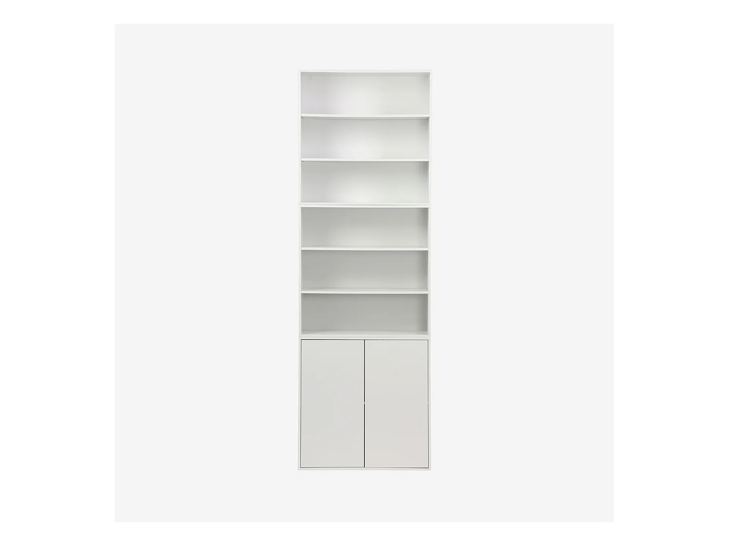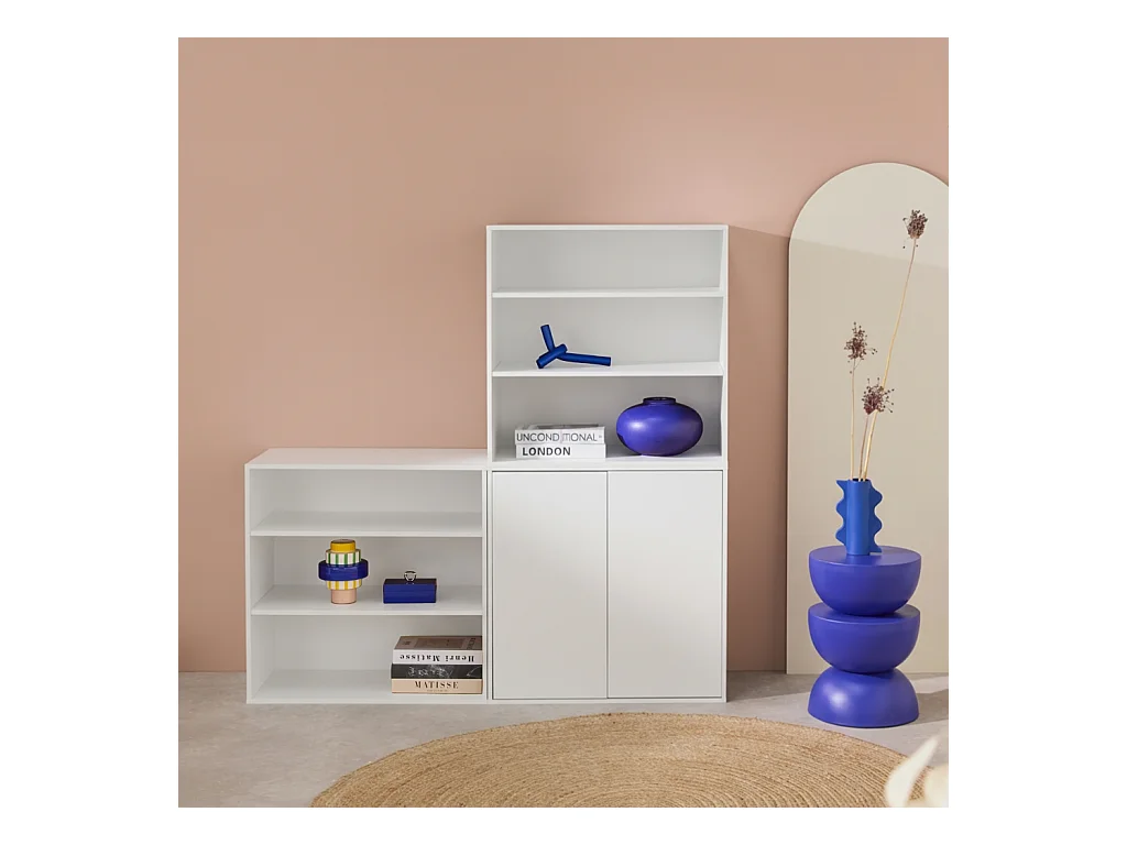 Etagère. bibliothèque modulable décor bois blanc 3 éléments - 2 portes 5 étagères L 70 x P 35 x H 210cm - Kompo