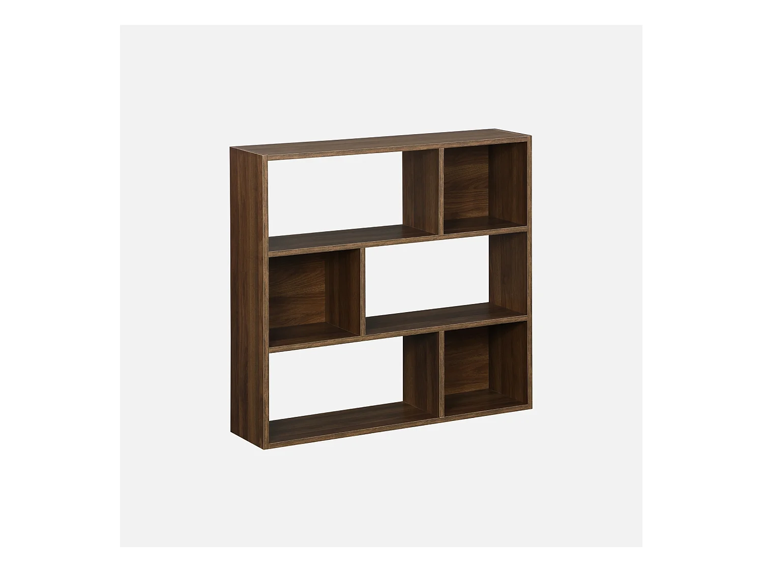 Etagère bibliothèque noyer Pieter 3 étagères 6 compartiments de rangement