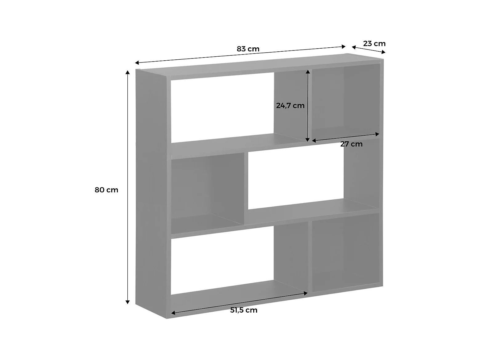Bibliothèque design asymétrique – Pieter – 5 étagères. 10 compartiments de rangement. 83x23x173cm
