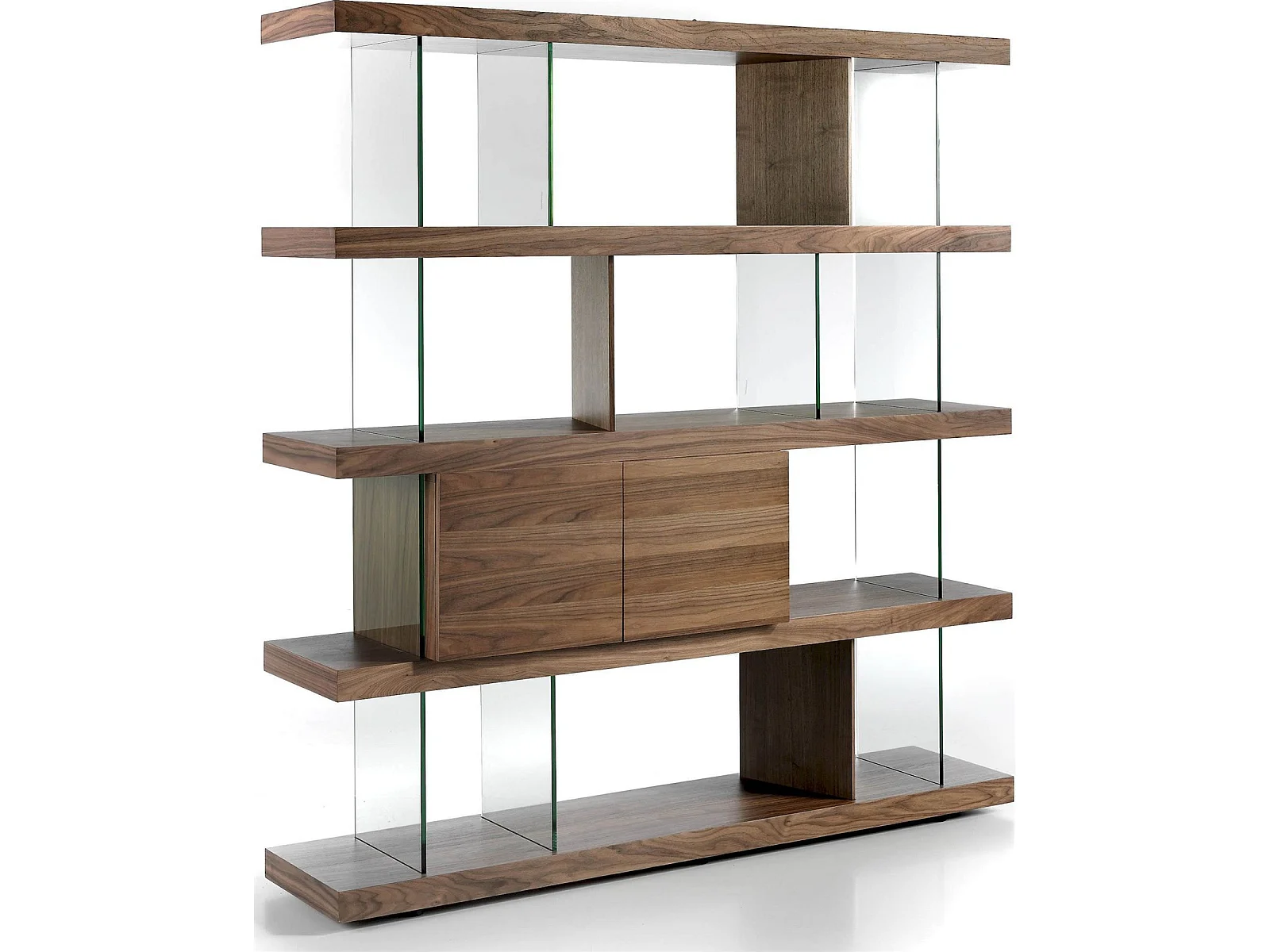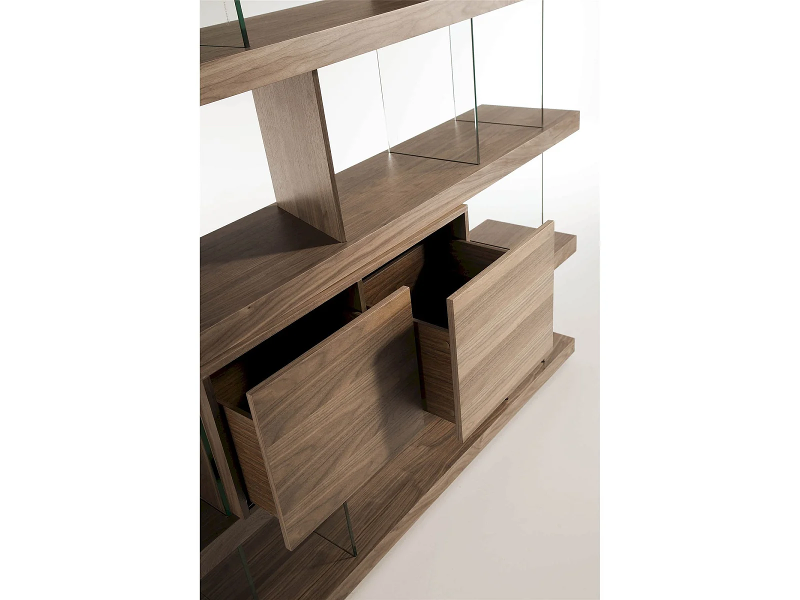 Étagère bois côtés en verre trempé 2 tiroirs à amortie