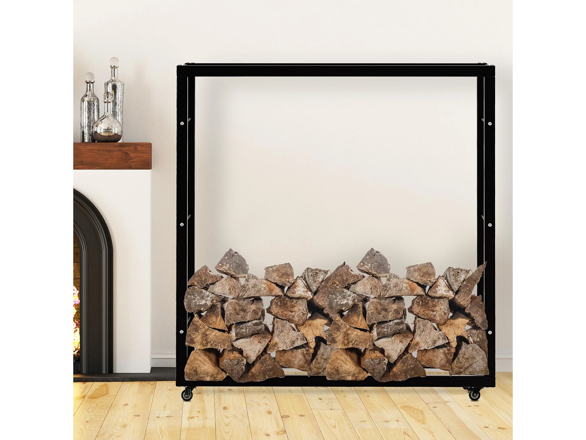 Etagère porte bois de cheminée porte-bûches design contemporain charge max. 100 Kg dim. 40L x 25l x 100H cm métal noir