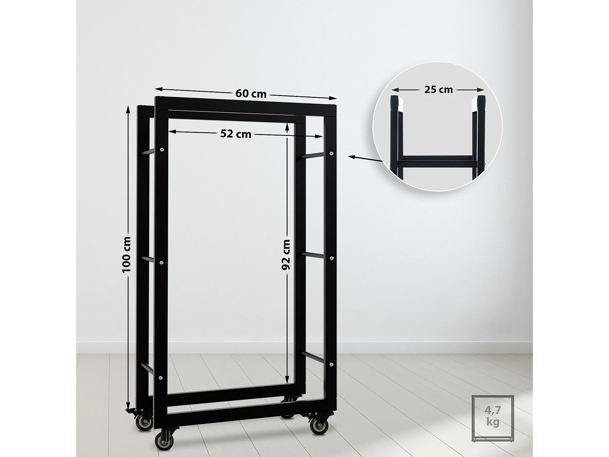 Etagère bois de cheminée - Métal - 25x60x100 cm - Noir - Keri