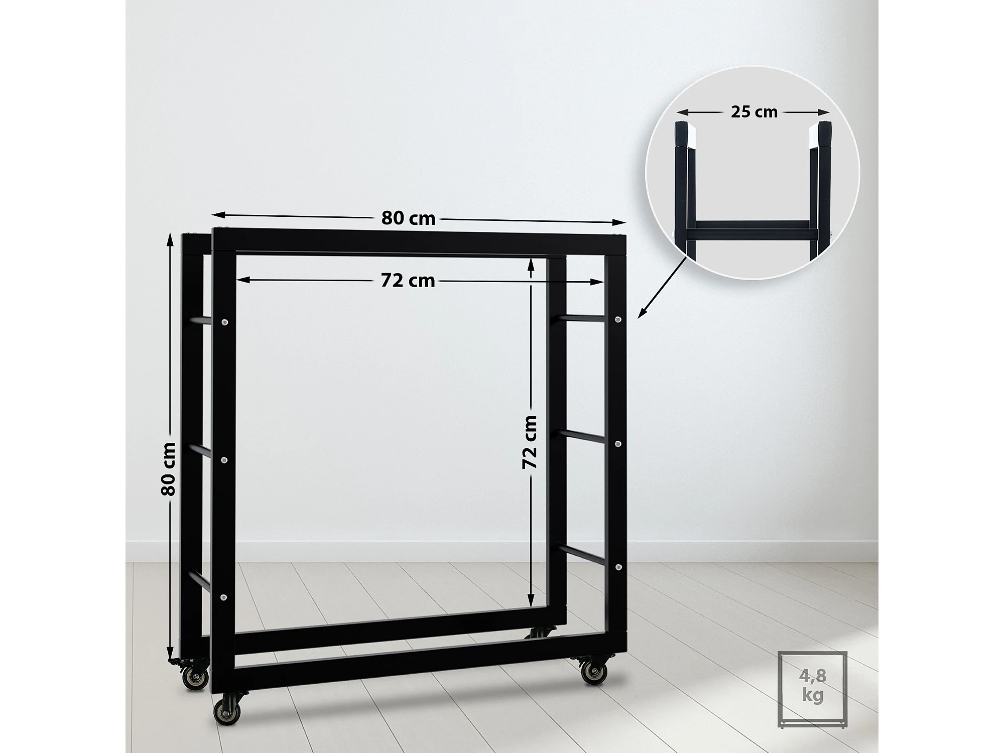 Etagère bois de cheminée - Métal - 25x80x80 cm - Noir - Keri