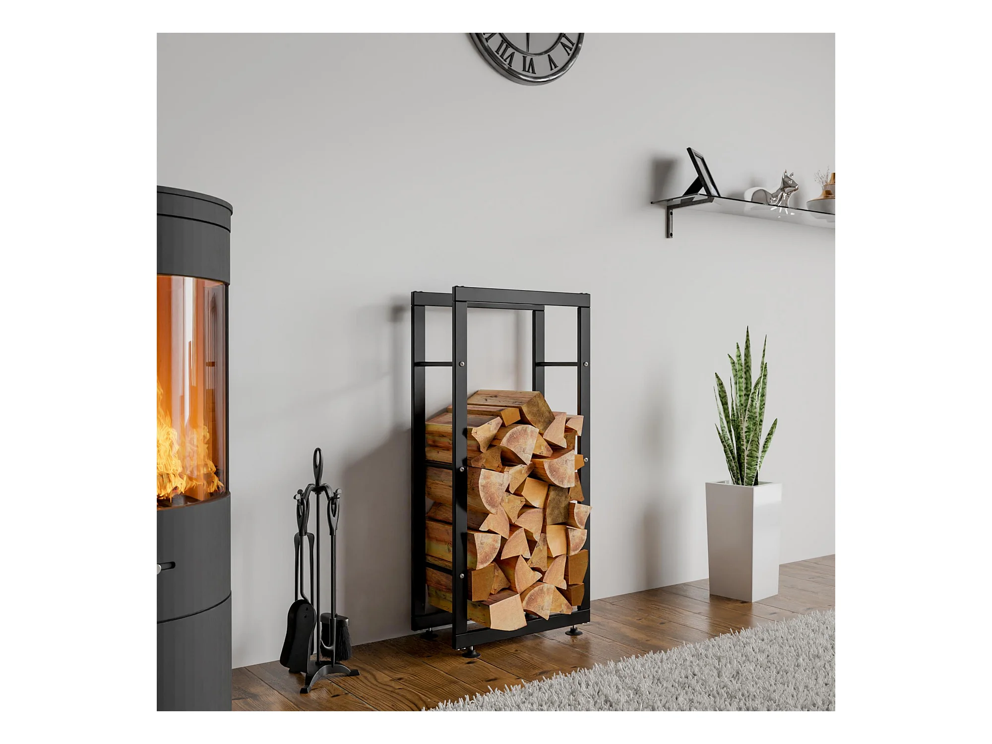 Etagère bois de cheminée - Métal - 50 x 40 x 100cm - Noir-mat - Irving