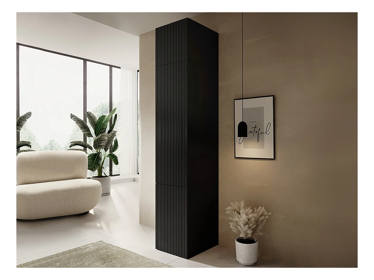 Étagère Levmari 113, Fermé|Avec des portes, MDF|Stratifié, 244x45x56cm, Noir