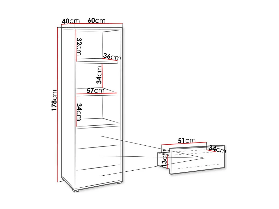 Étagère Comfivo Fersoe 105, Avec tiroirs|Fermé, Stratifié, 178x60x40cm, Cachemire