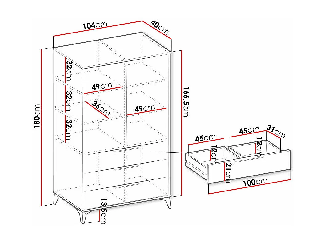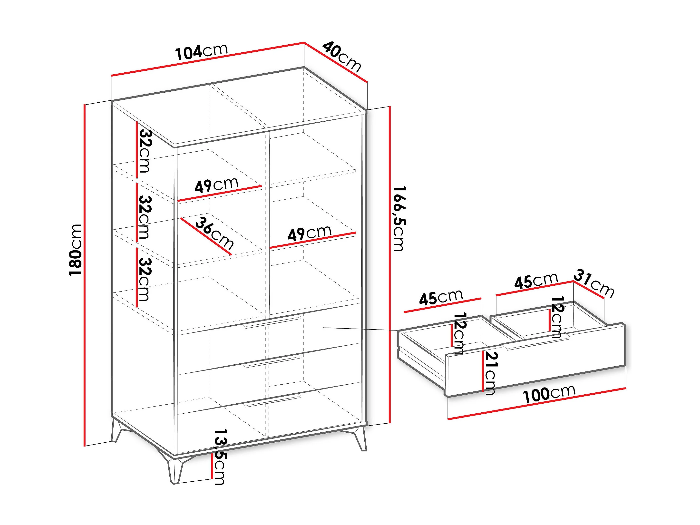 Étagère Comfivo Camlue 103, Avec des portes|Fermé|Avec tiroirs, MDF|Stratifié, 180x104cm