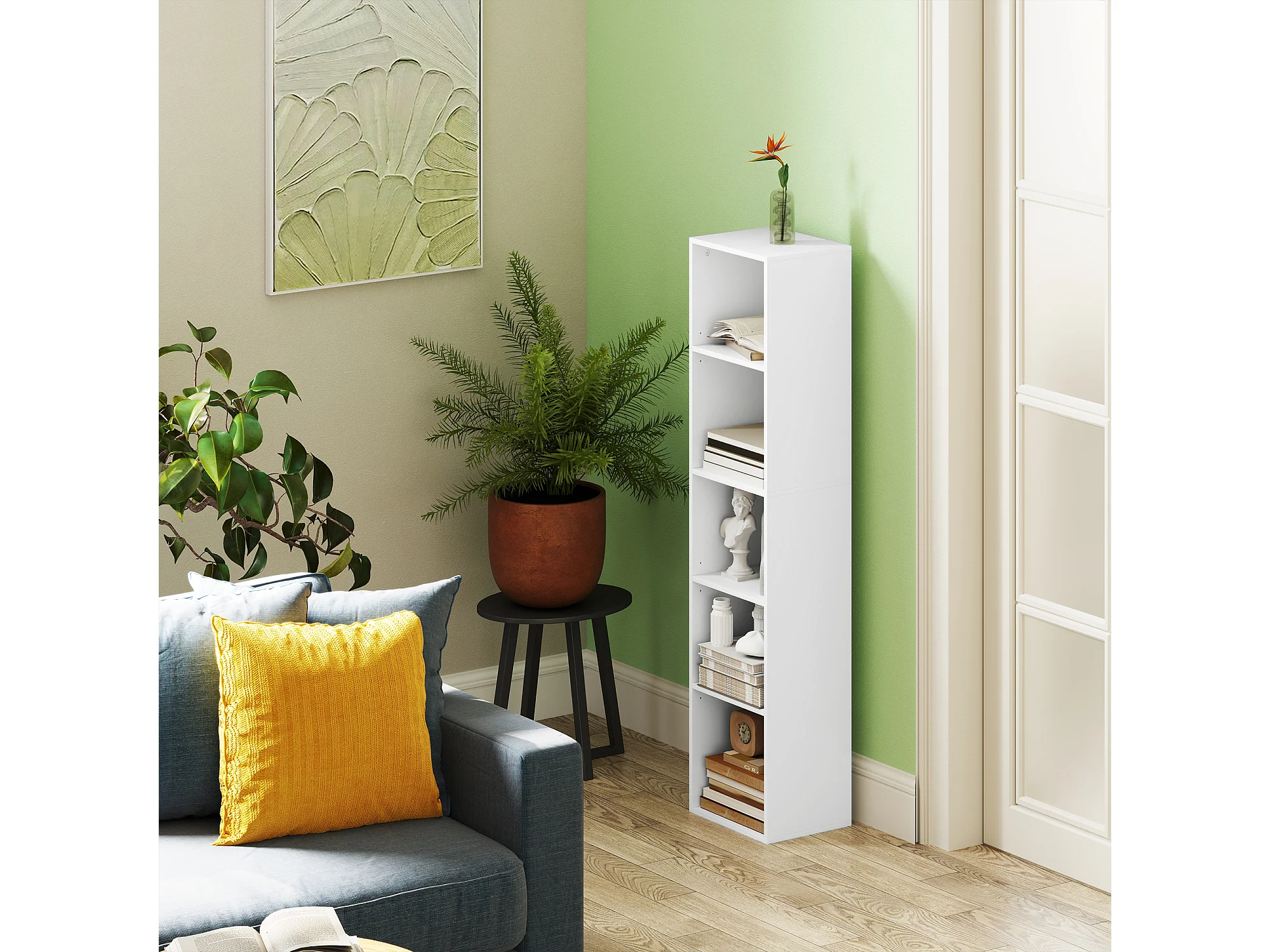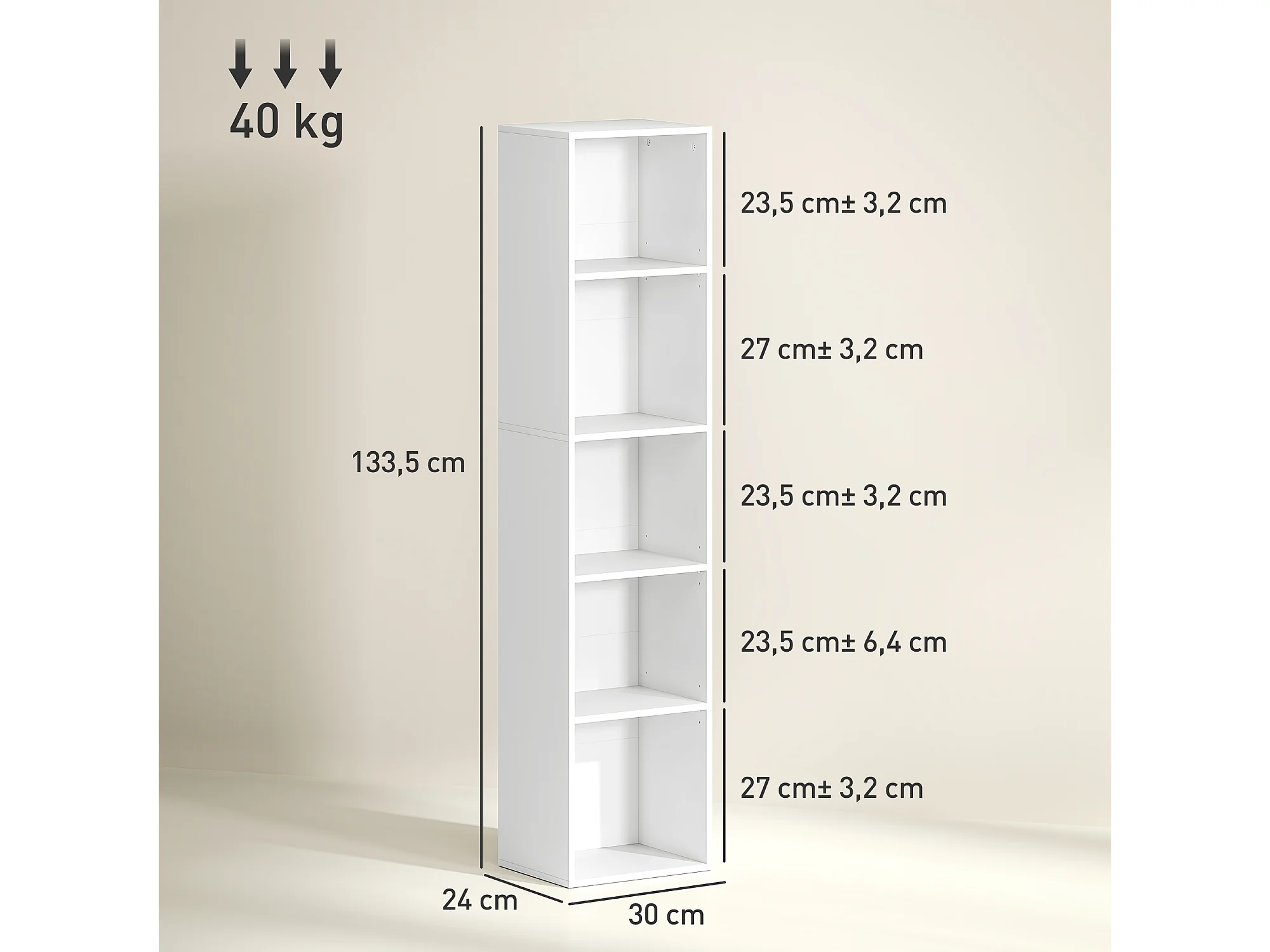 Étagère cube colonne - bibliothèque - rangement 5 compartiments - dim. 30 x 24 x 133 cm - blanc