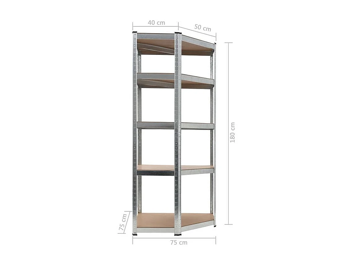 Étagère d'angle à 5 niveaux Argenté Acier et bois d'ingénierie