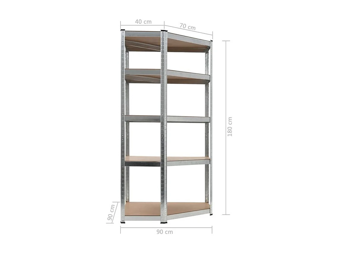 Étagère d'angle à 5 niveaux Argenté Acier et bois d'ingénierie