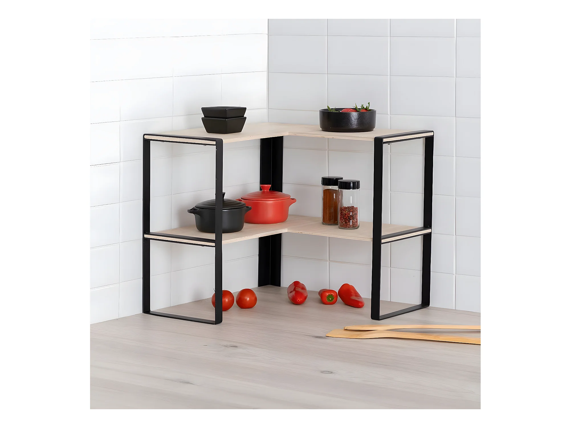 Étagère d'angle 2 niveaux en métal noir L 40 x P 40 x H 35 cm