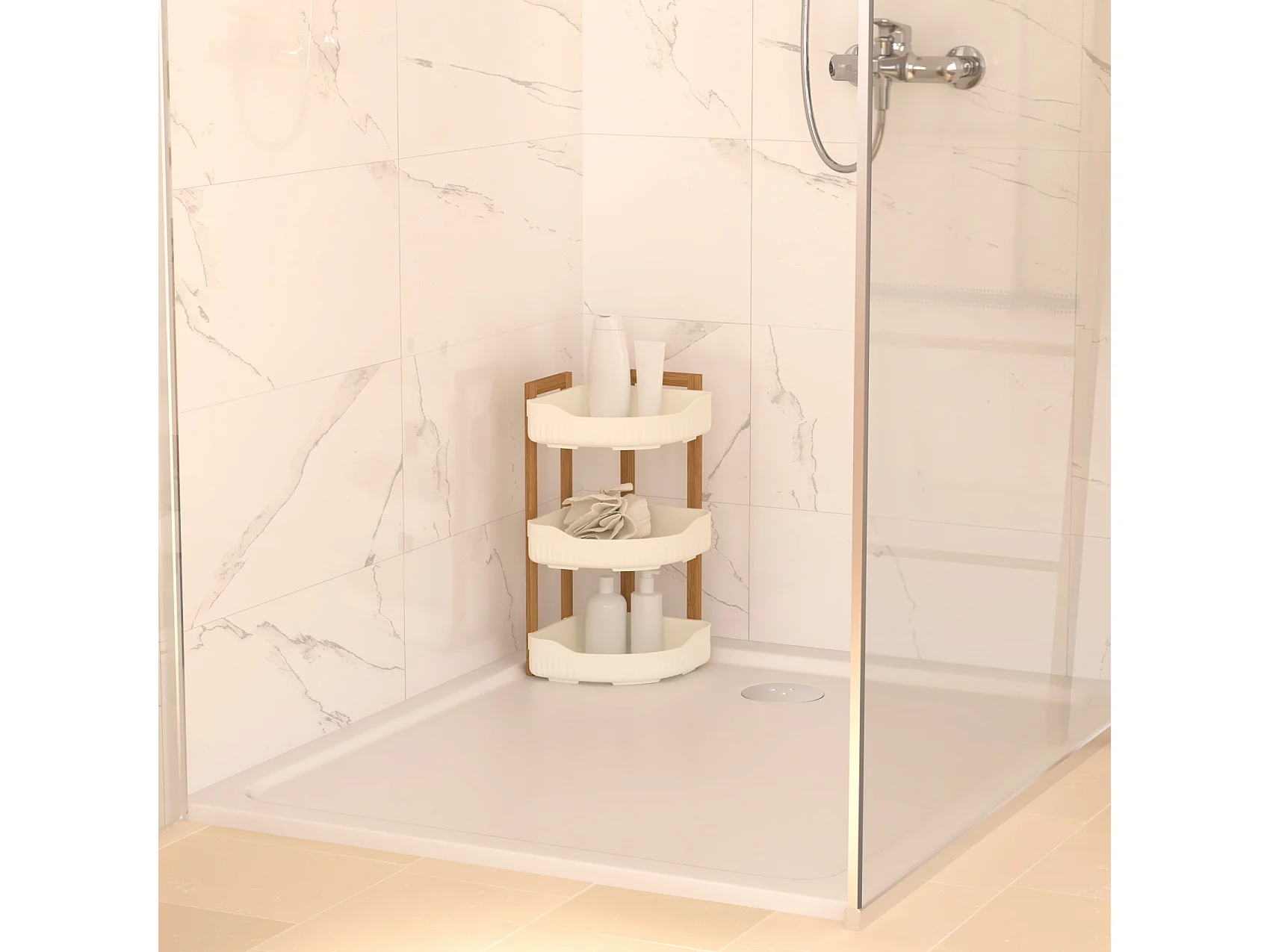 Étagère d'Angle de Douche 3 Niveaux "Natureo" 45cm Blanc