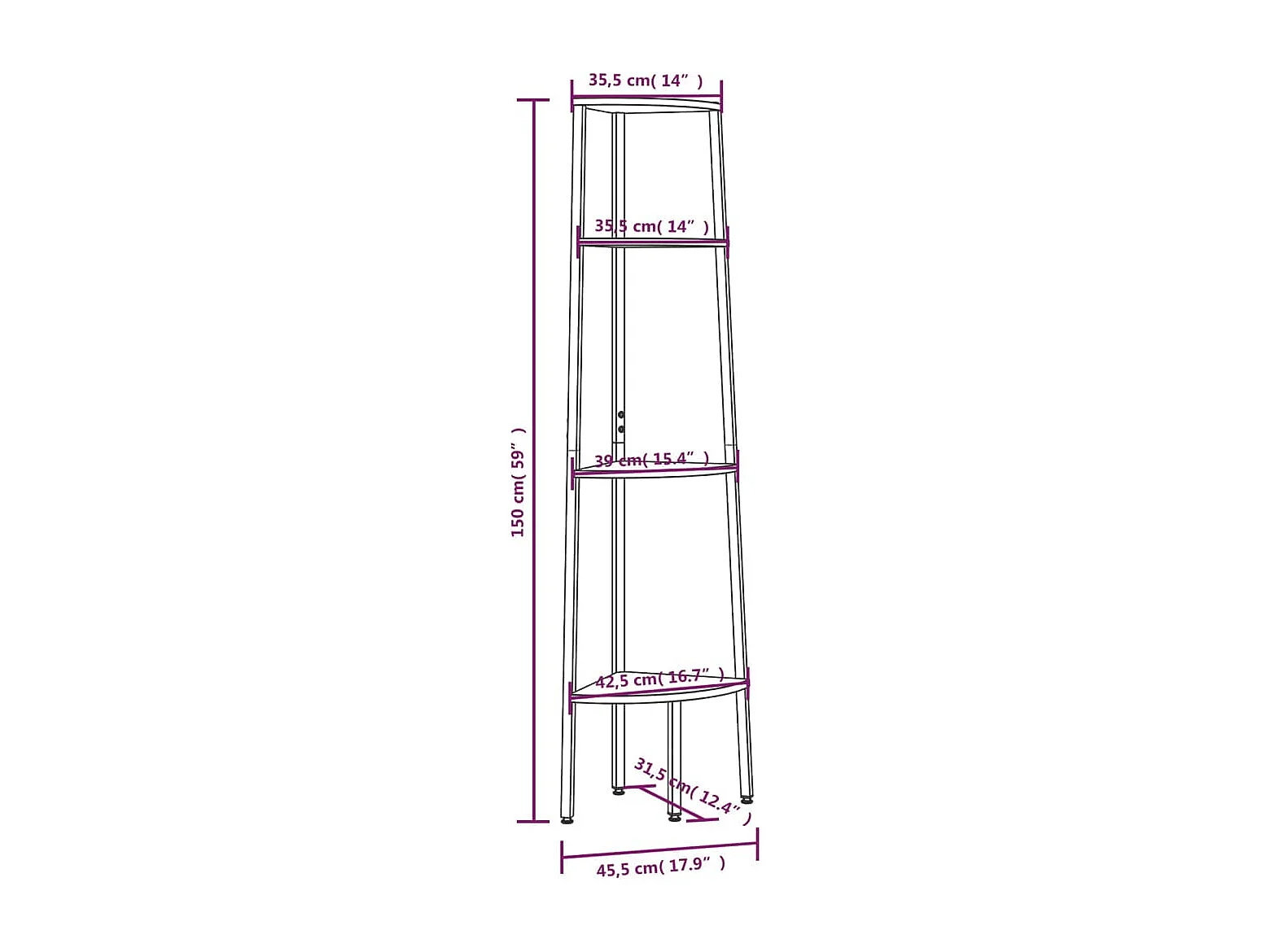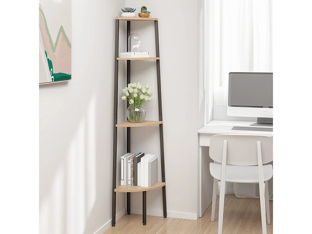 Étagère d'angle à 4 niveaux Marron clair et noir 45,5 x 31,5 x 150 cm