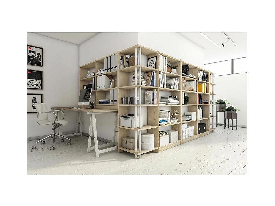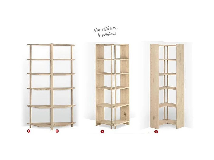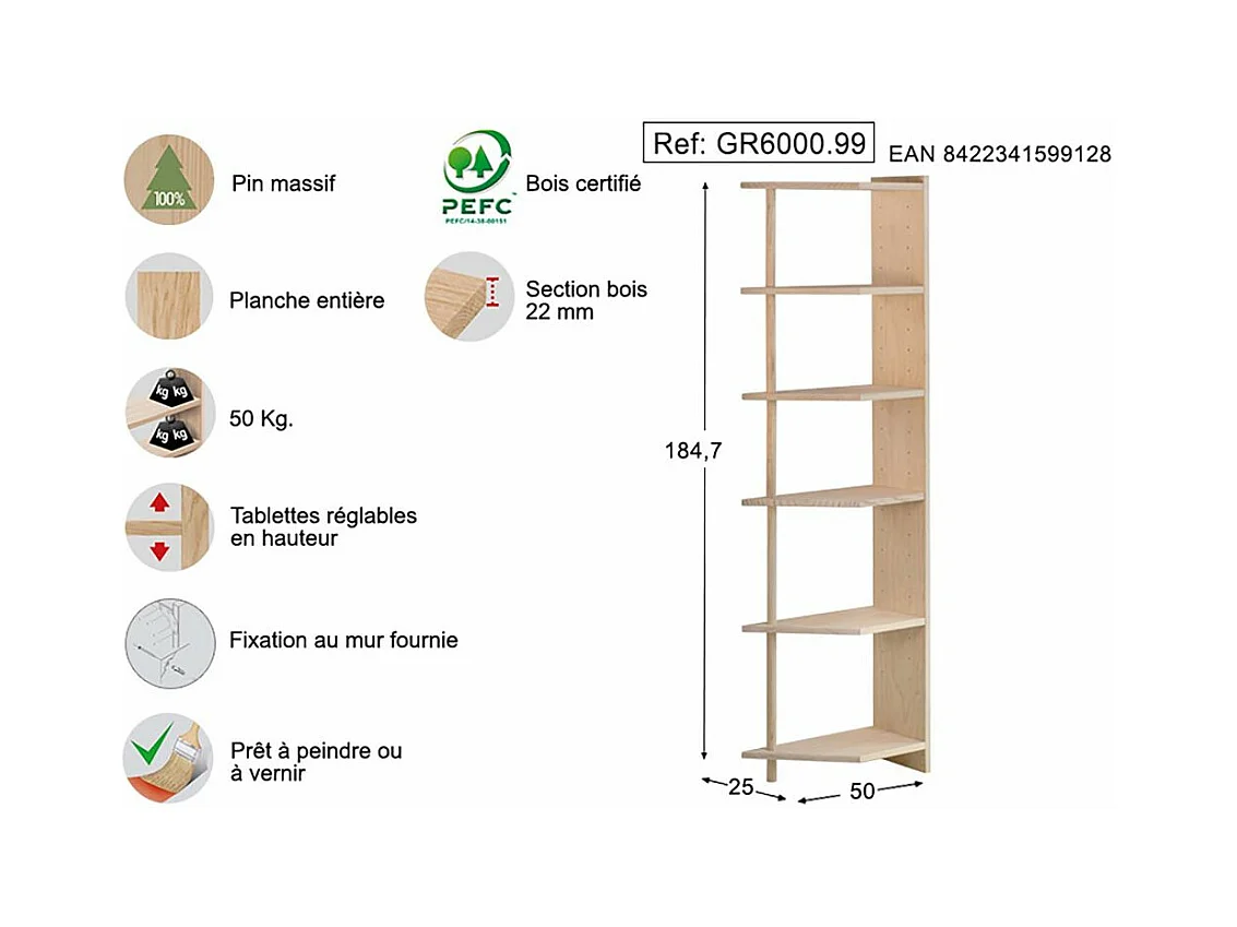 Etagère d'angle en pin brut Gala 6 tablettes