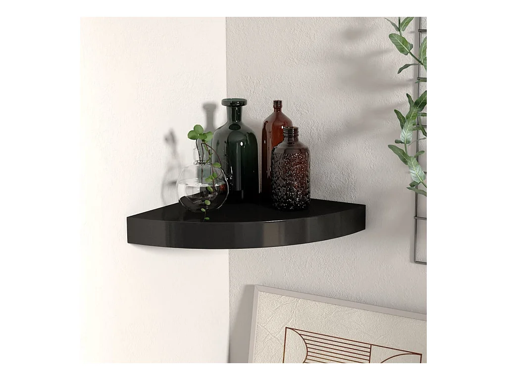 Étagère d'angle flottante Noir brillant 25x25x3,8 MDF