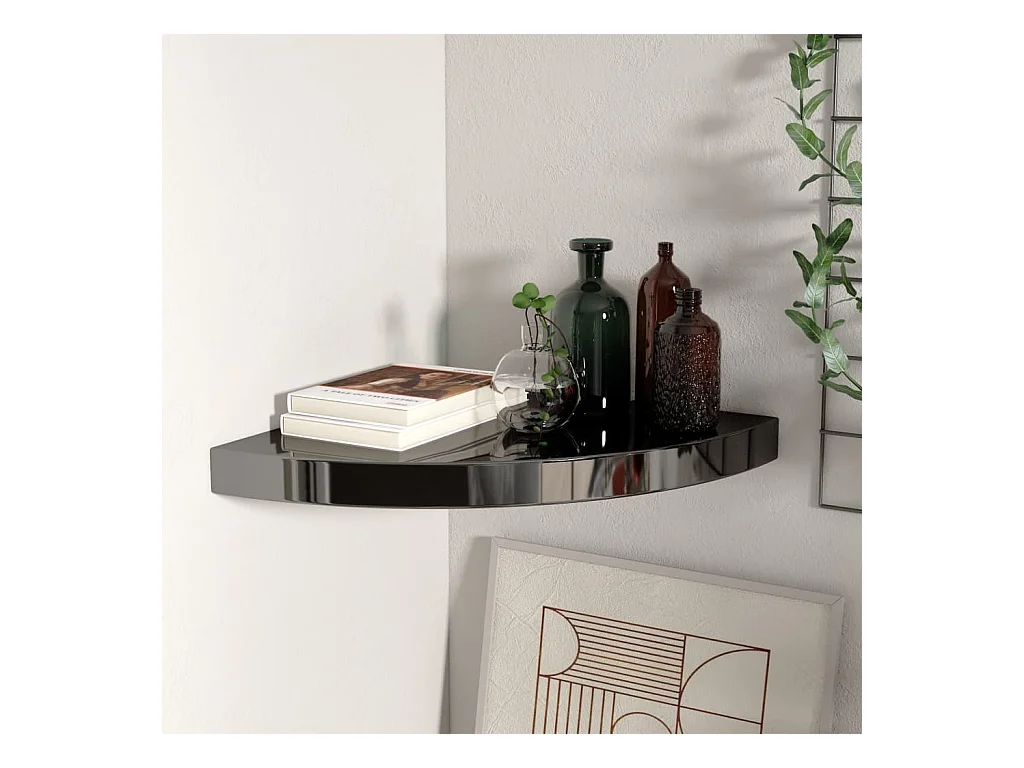 Étagère d'angle flottante Noir brillant 35x35x3,8 MDF