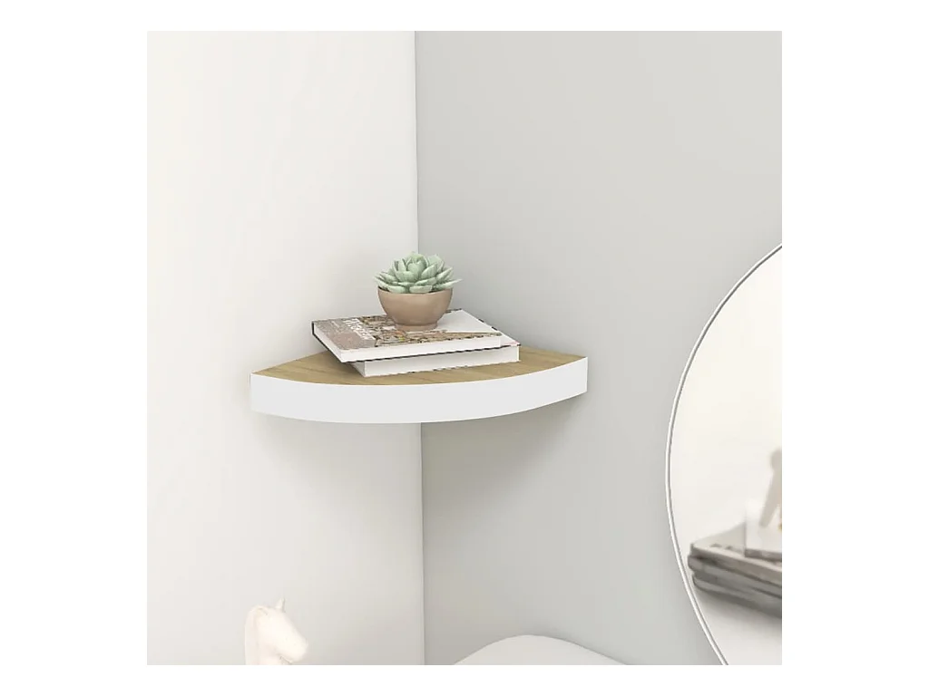 Étagère d'angle murale Chêne et blanc 25x25x3,8 MDF
