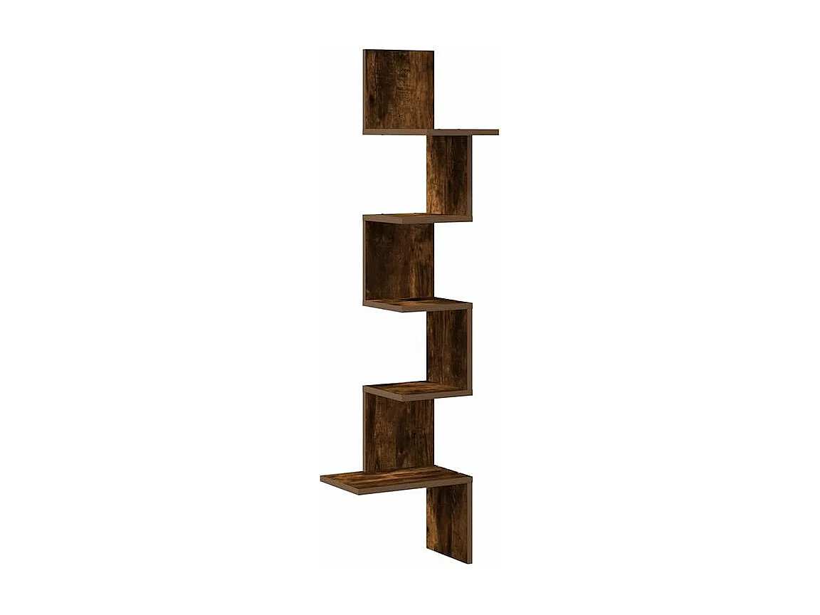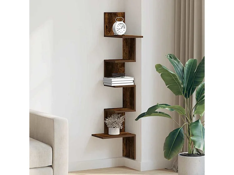 Étagère d'angle murale chêne fumé bois d'ingénierie