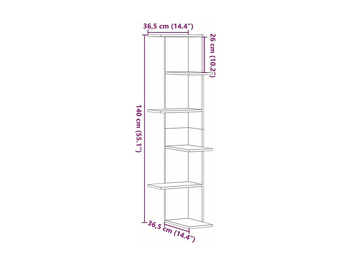 Étagère d'angle murale vieux bois 32x32x127,5 bois ingénierie