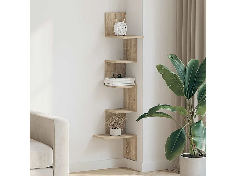 Étagère d'angle murale chêne sonoma bois d'ingénierie