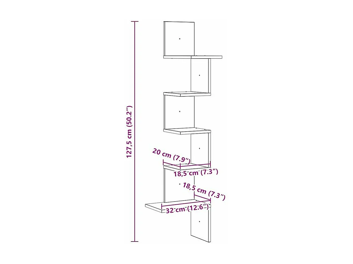 Étagère d'angle murale chêne artisanal 20x20x127,5