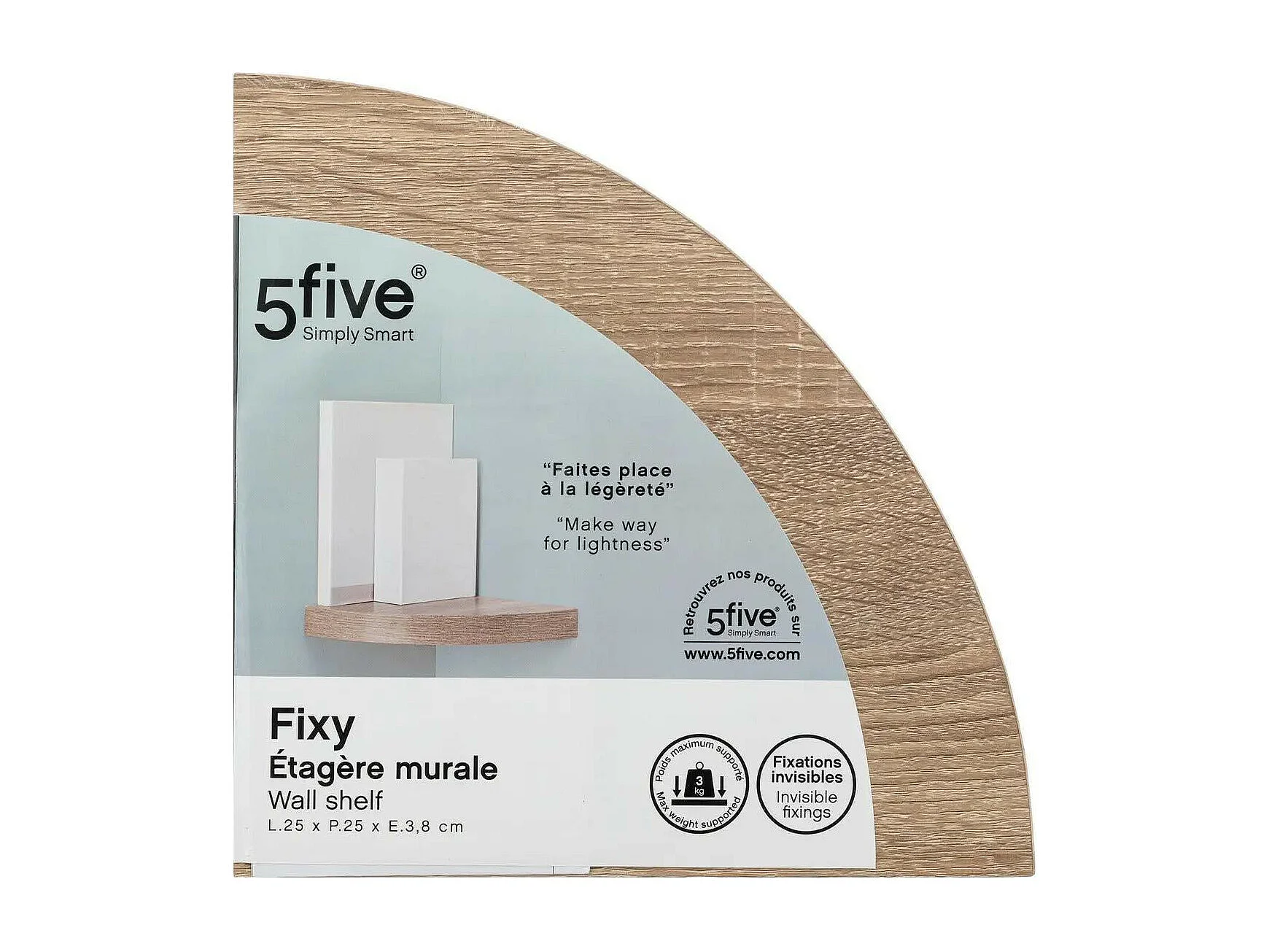 Étagère d'angle murale flottante effet chêne naturel 25 x 25 cm Fixations invisibles