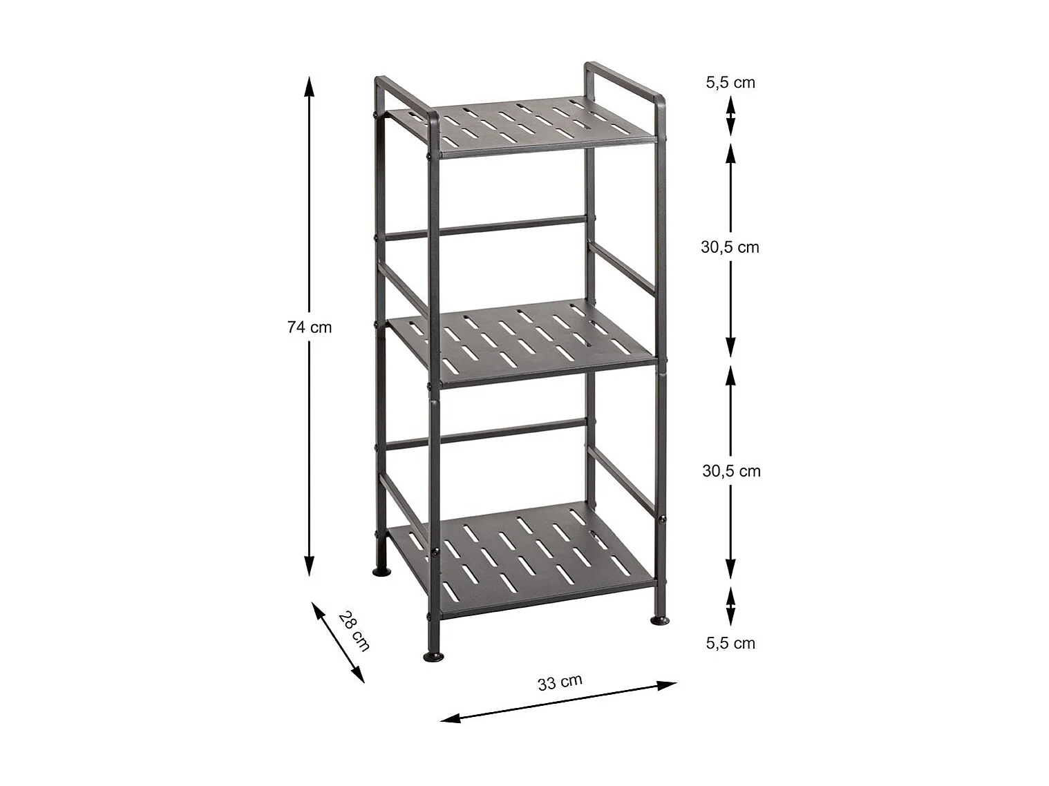 Etagère de 3 niveaux meuble de rangement en métal Gris anthracite - Longueur 33 x Hauteur 74 x Profondeur 28 cm