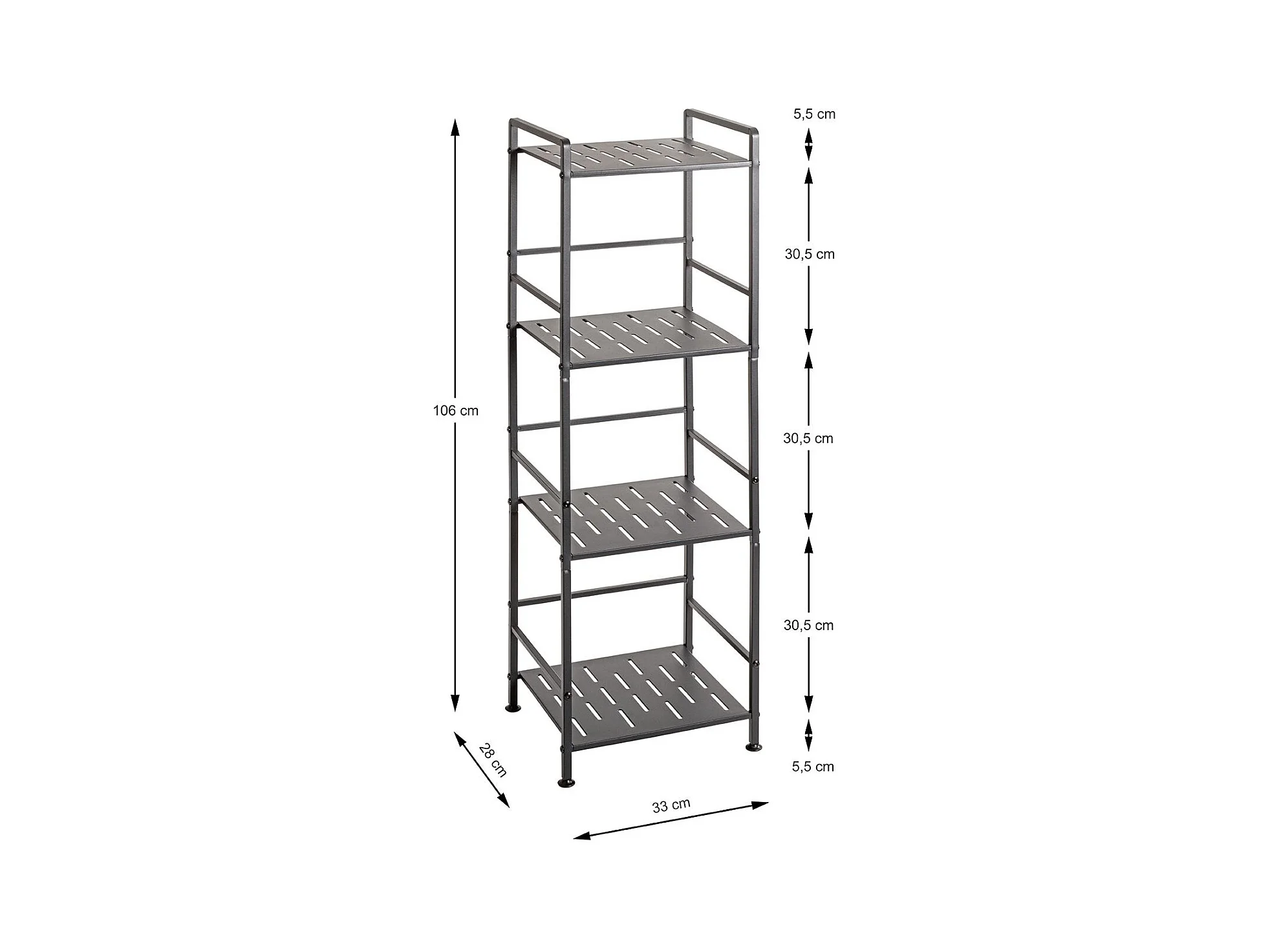 Etagère de 4 niveaux meuble de rangement en métal Gris anthracite - Longueur 33 x Hauteur 106 x Profondeur 28 cm