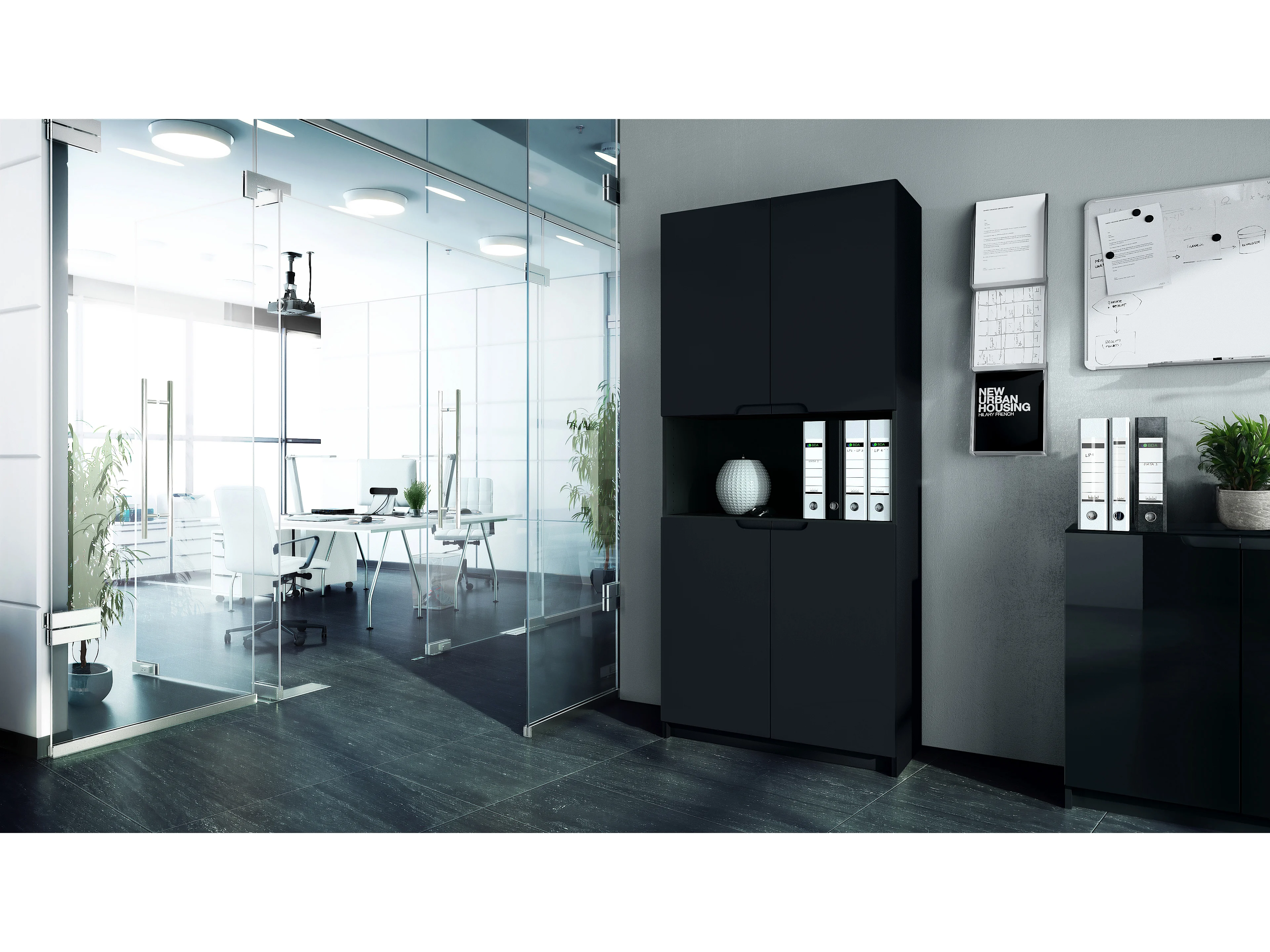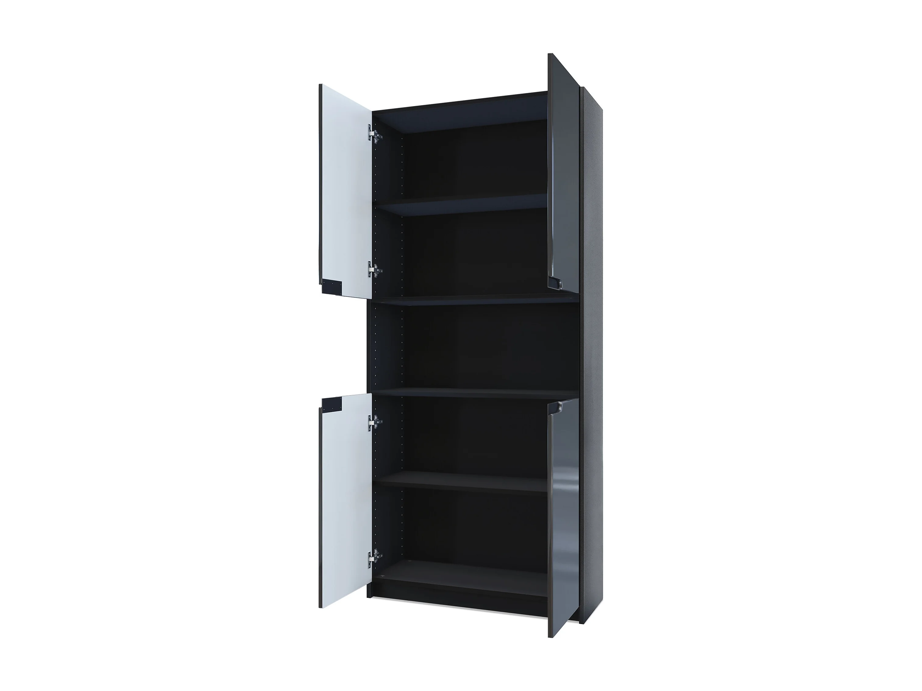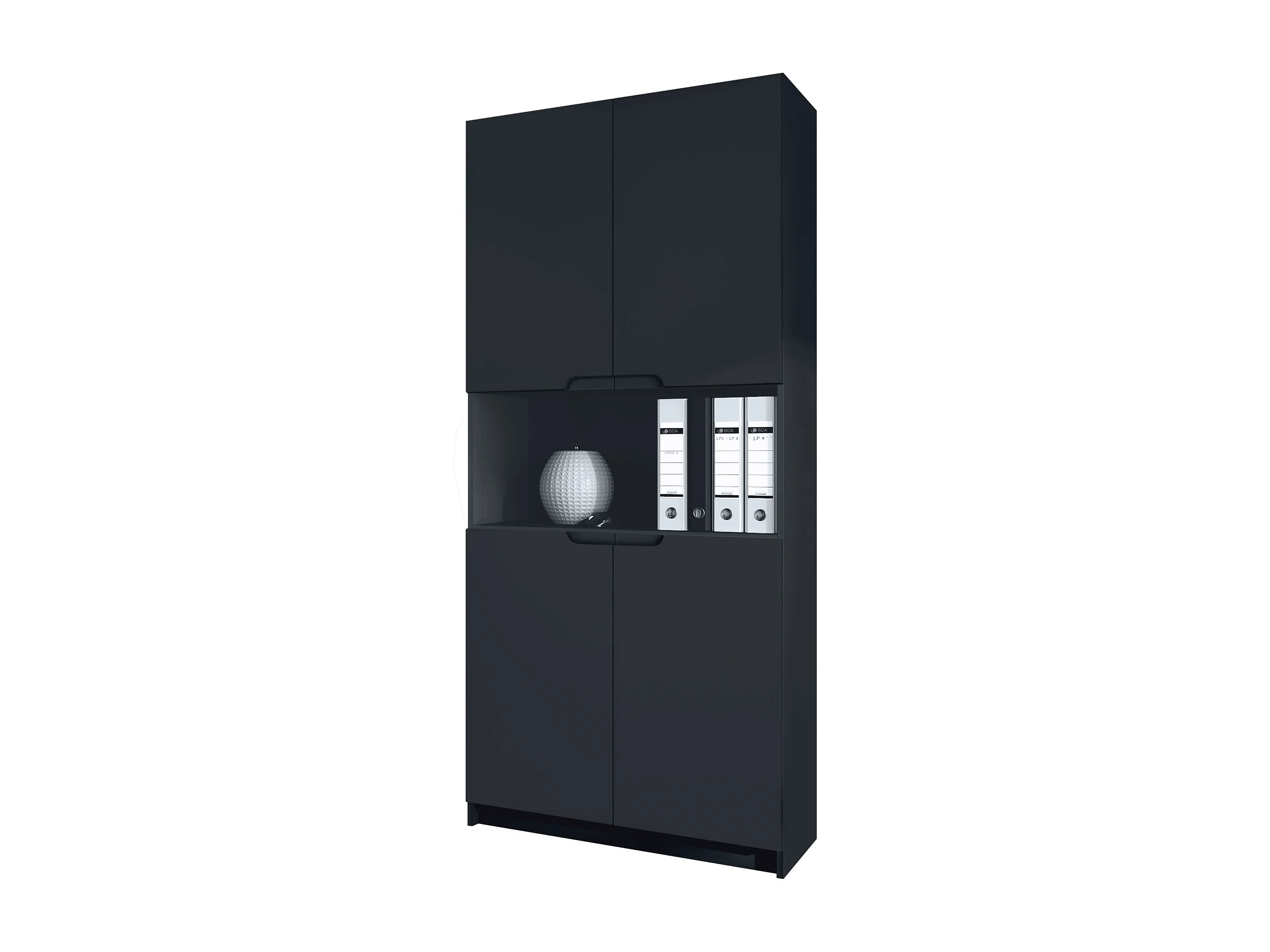 Étagère de bureau Logan V2, Armoire de rangement avec 5 compartiments et 4 portes, noir mat/noir mat (82 x 184 x 37 cm)