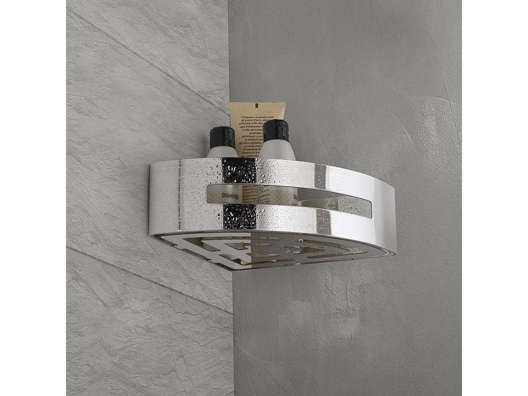 Porte-Objets De Douche D'angle Acier Chromé Intérieur Blanc | Peonia