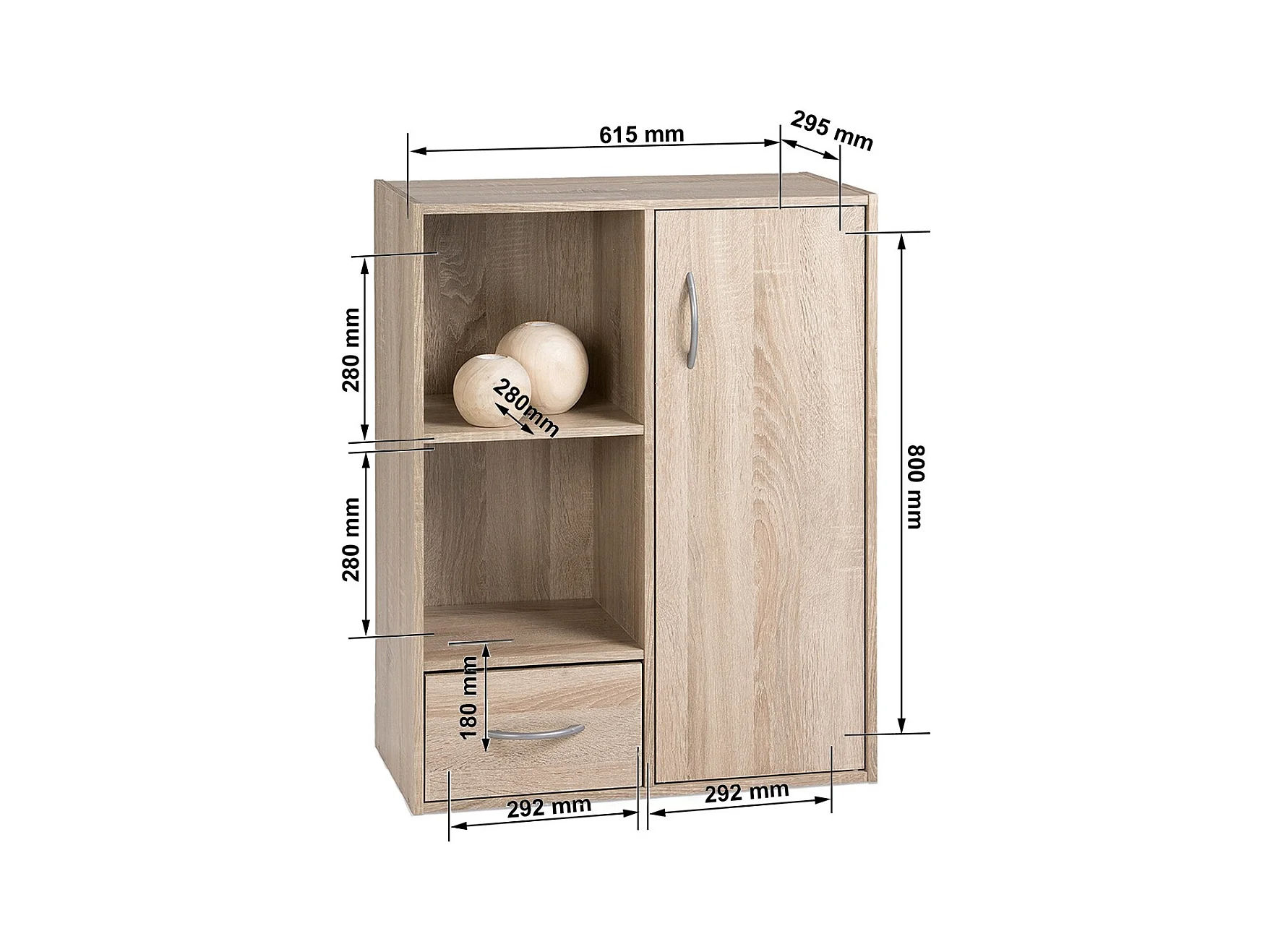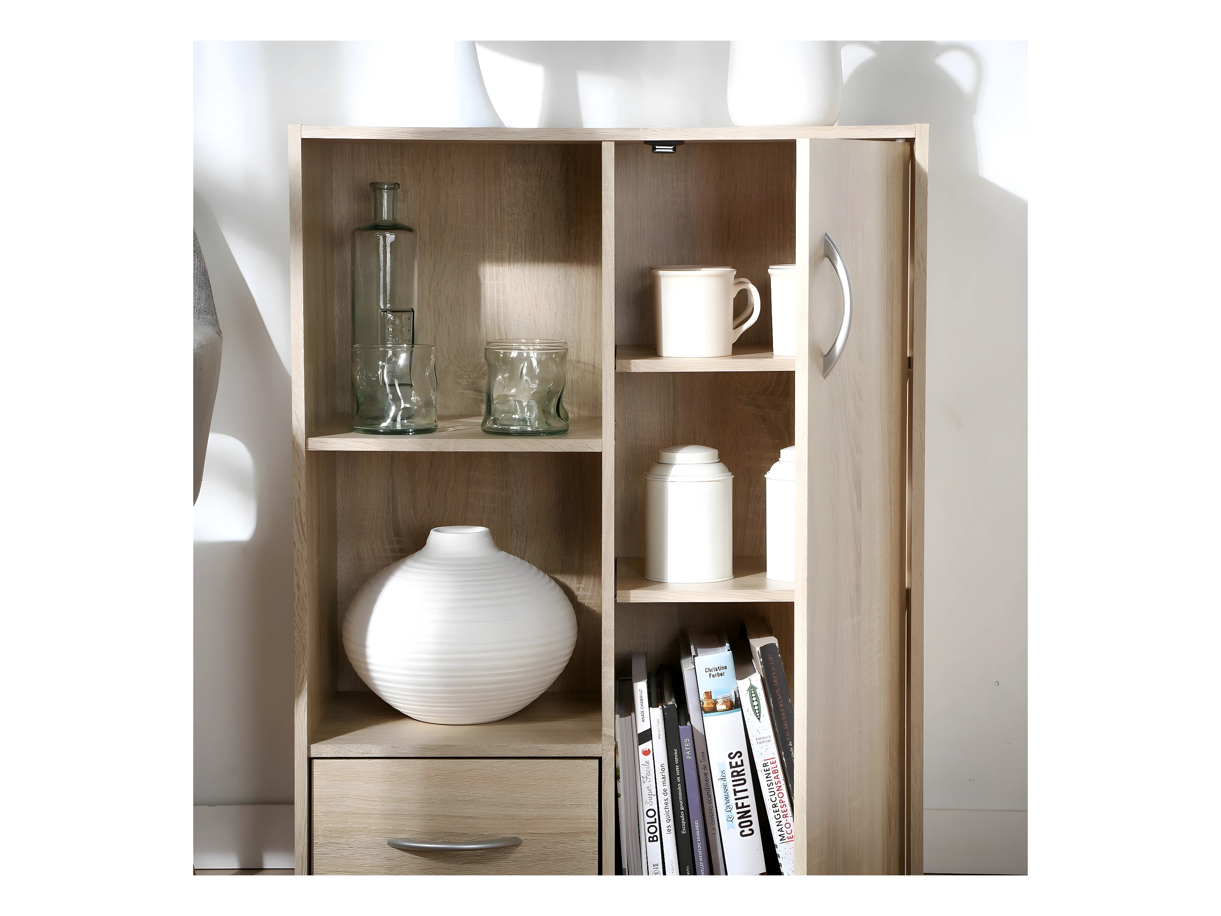 Etagère de rangement 2 casiers avec 1 tiroir et 1 placard - L61,5 cm