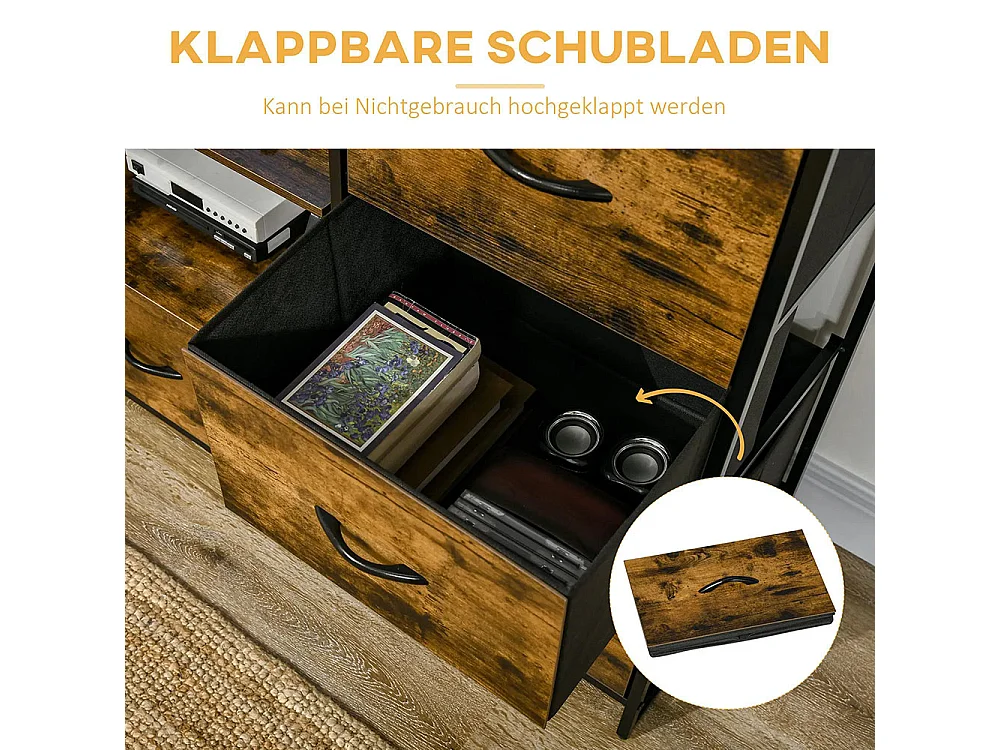 Étagère de rangement avec tiroirs, espace de rangement ouvert, structure en acier, pieds réglables, dimensions : 44 x 40 x 155 cm.