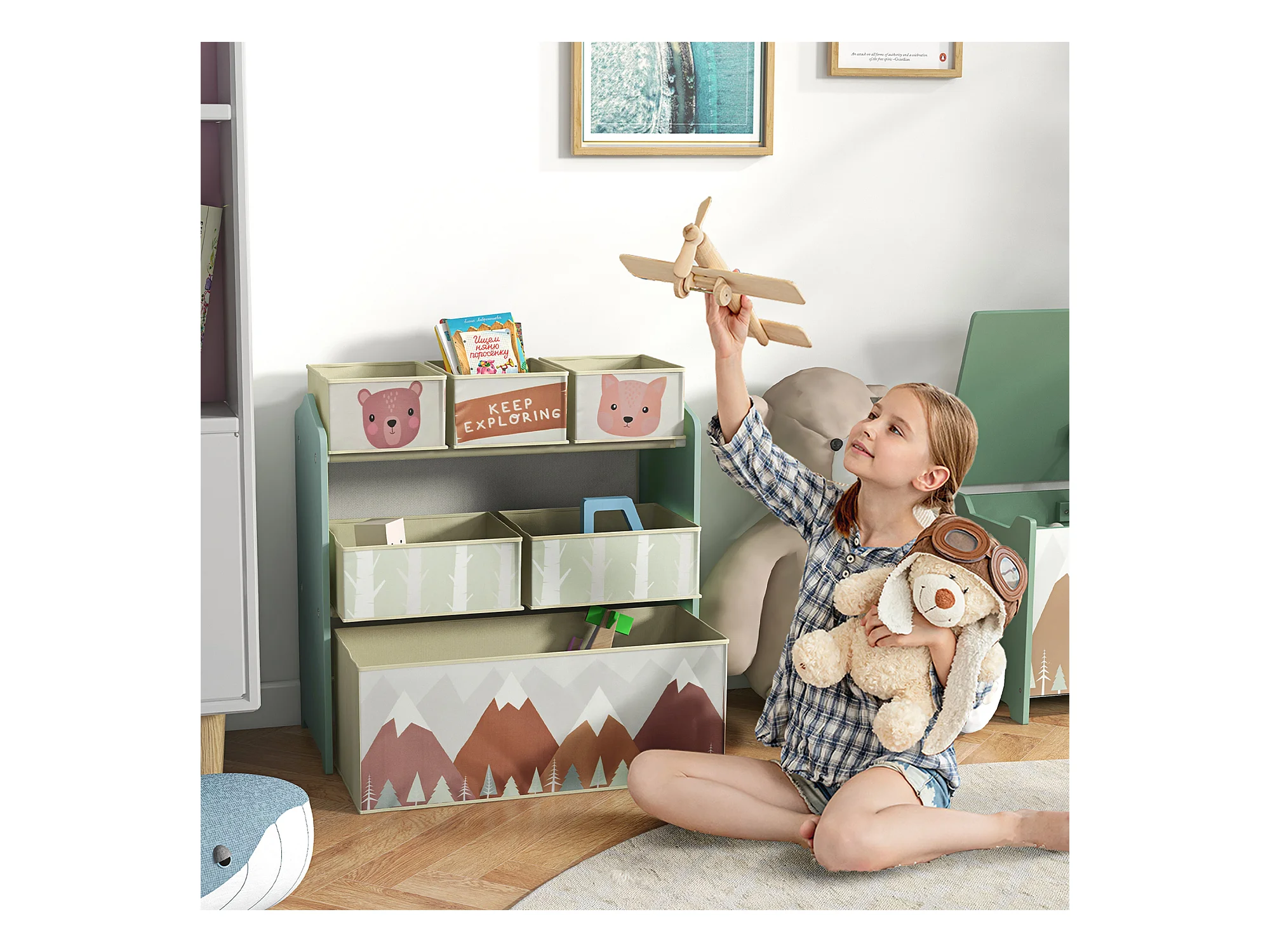 Étagère de rangement enfant design mountain adventure - 6 tiroirs - MDF tissu non tissé - vert