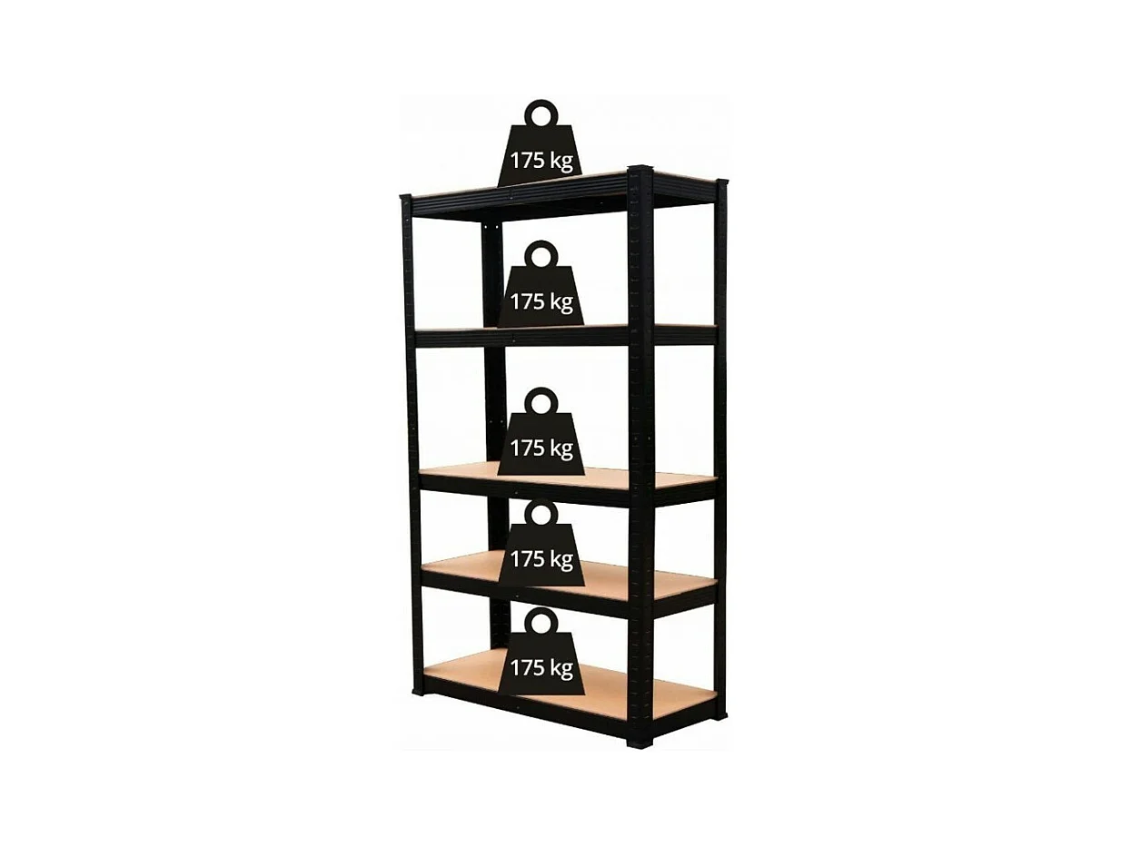 Rack en métal MDF/Noir – 180 x 90 x 45 cm - 5 étagères - Montage facile sans boulons