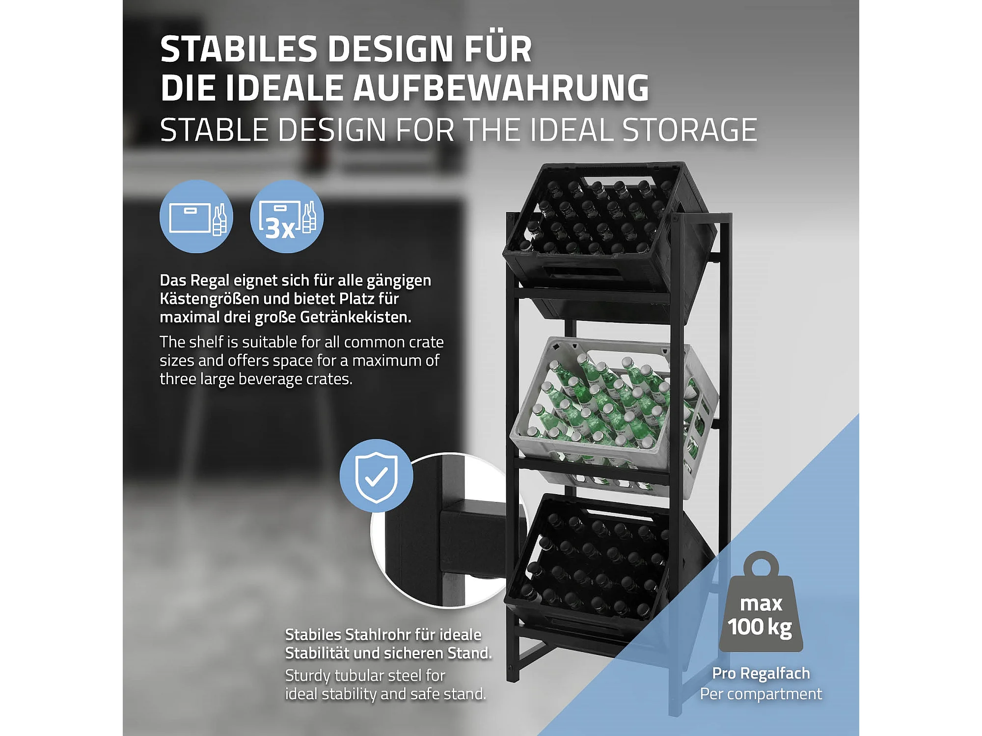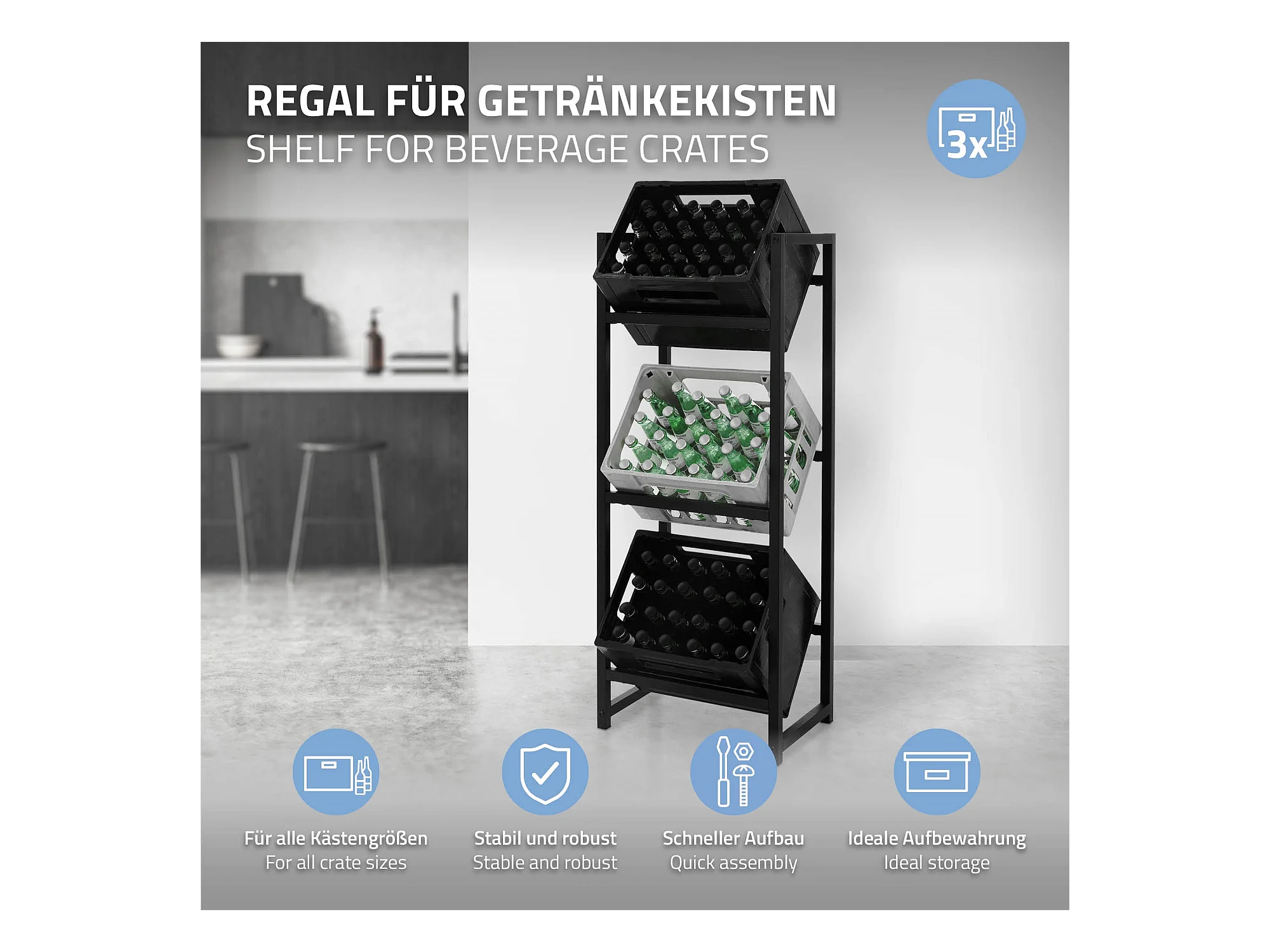 Étagère de rangement pour 3 caisses de boissons 47x31x116,5 cm acier anthracite